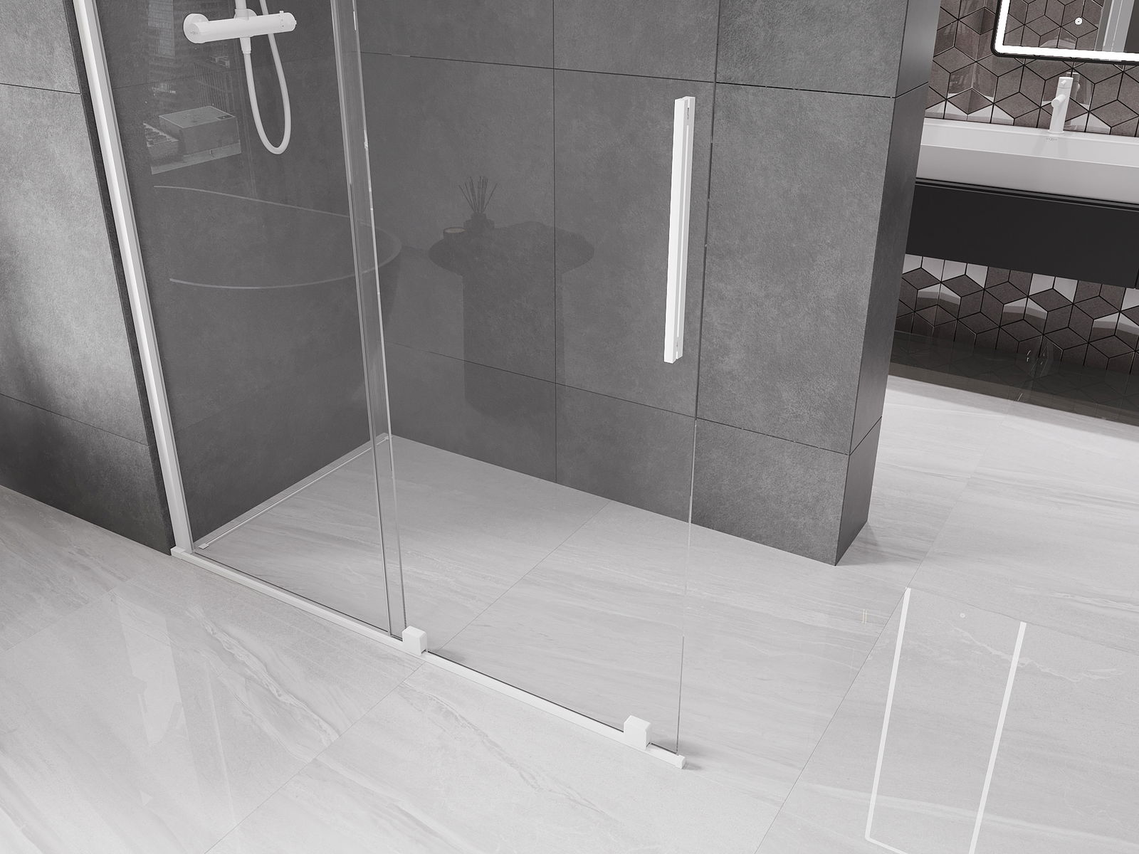 Mexen Velar sprchová stěna posuvná Walk-in 140 x 200 cm, transparentní 8 mm, bílá - 871-140-000-03-20