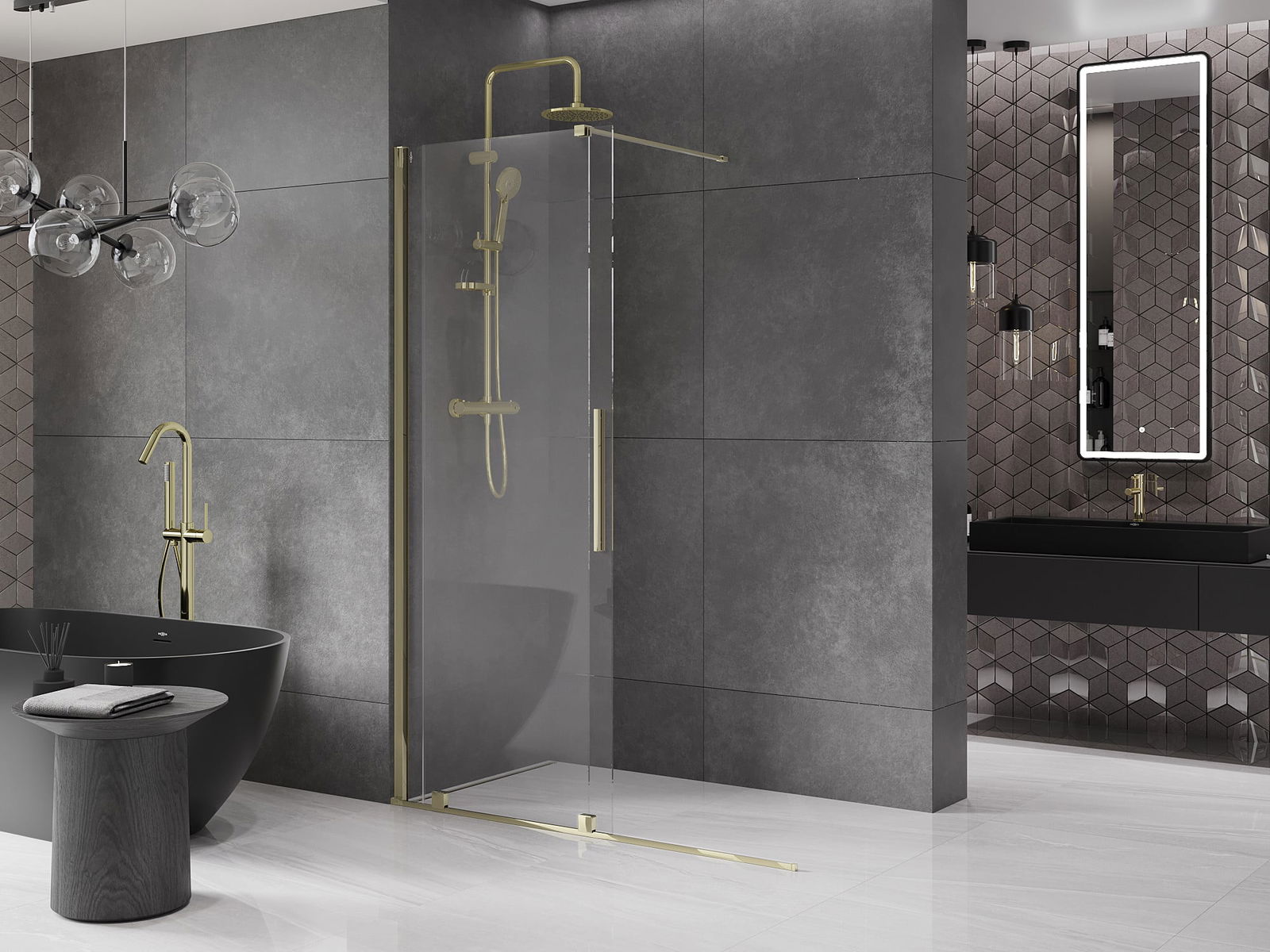 Mexen Velar posuvná sprchová stěna Walk-in 130 x 200 cm, transparentní 8 mm, zlatá - 871-130-000-03-50