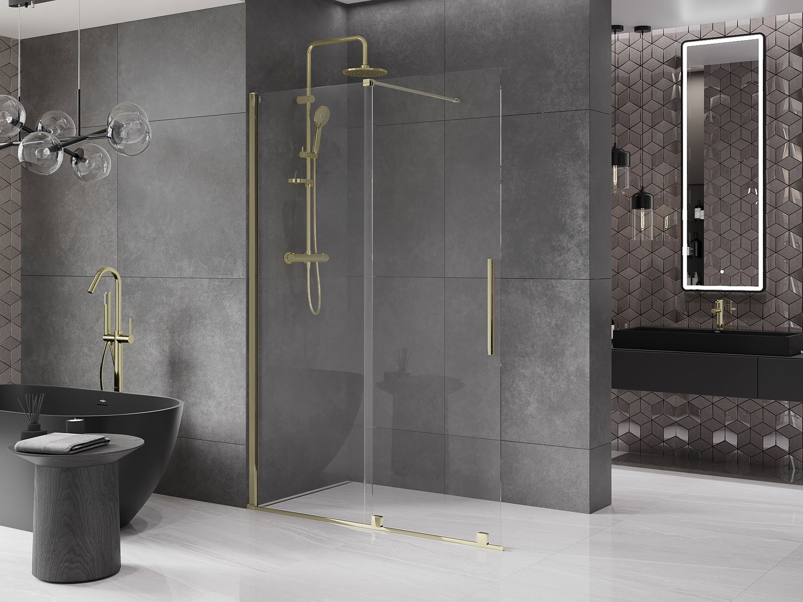 Mexen Velar posuvná sprchová zástěna Walk-in 160 x 200 cm, průhledná 8 mm, zlatá - 871-160-000-03-50