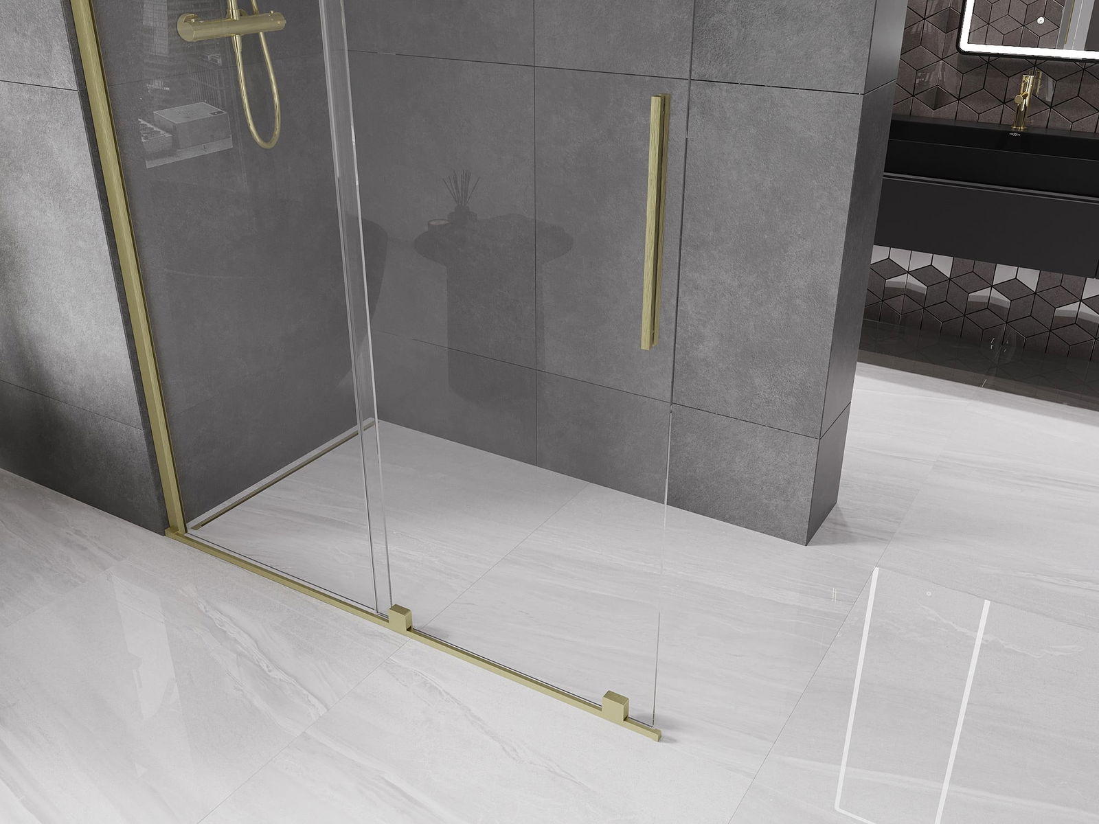Mexen Velar posuvná sprchová stěna Walk-in 130 x 200 cm, transparentní 8 mm, zlatá kartáčovaná - 871-130-000-03-55