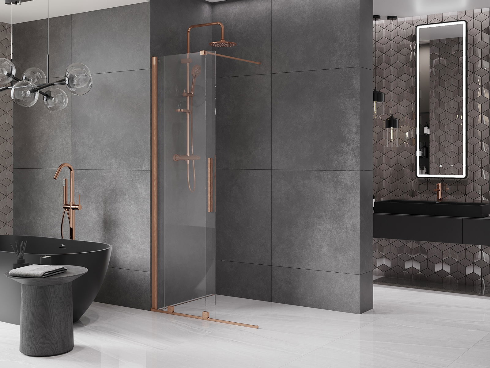 Mexen Velar Posuvné sprchové zástěny Walk-in 80 x 200 cm, transparentní 8 mm, kartáčovaná měď - 871-080-000-03-65