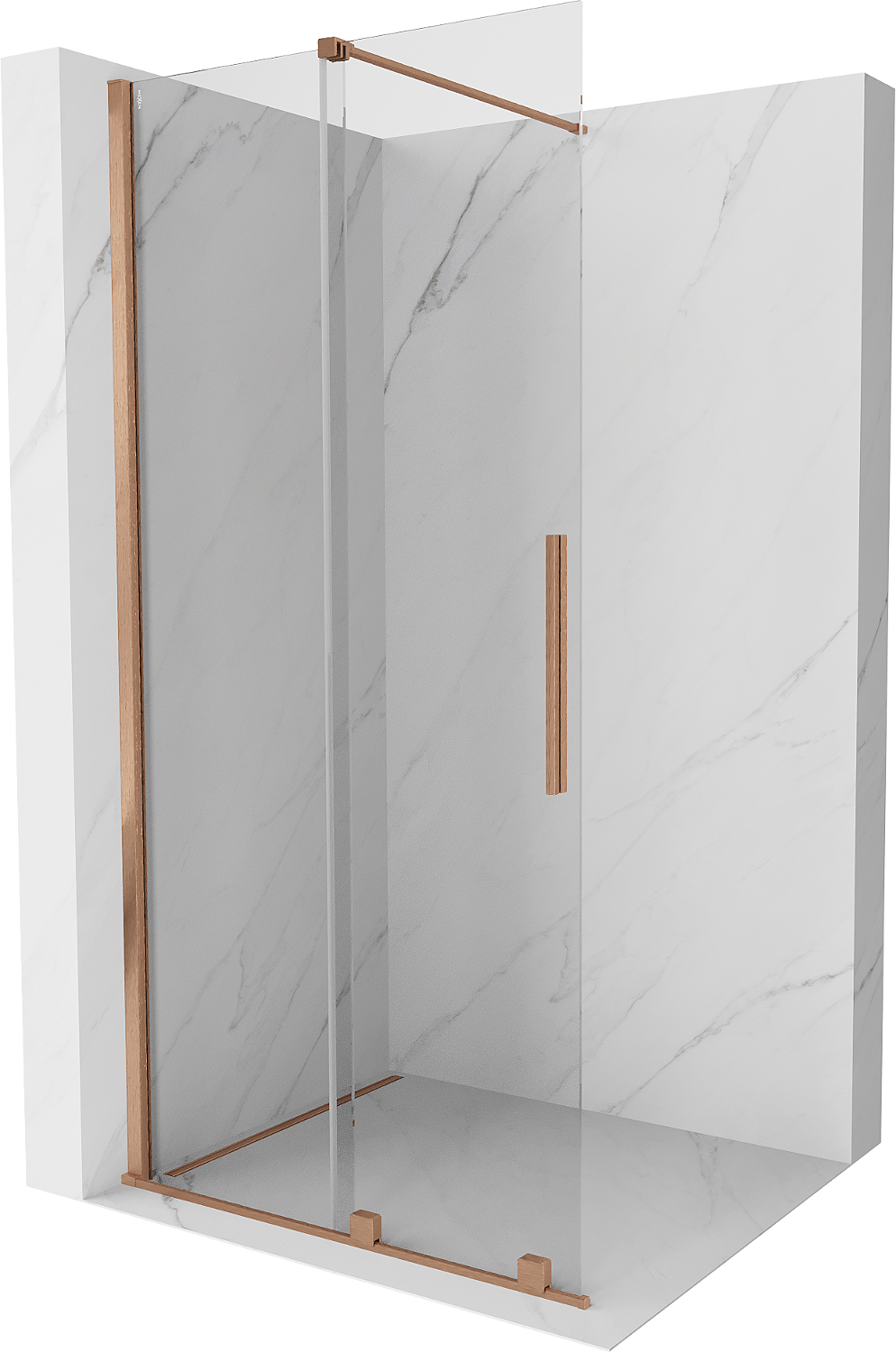 Mexen Velar posuvná sprchová stěna Walk-in 100 x 200 cm, transparentní 8 mm, kartáčovaná měď - 871-100-000-03-65