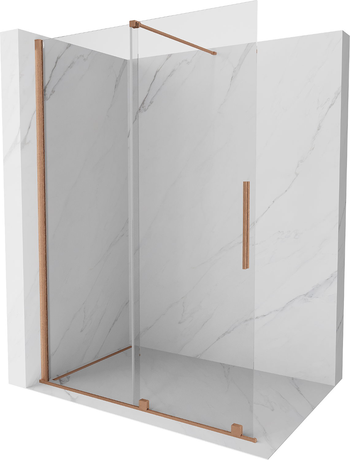 Mexen Velar posuvná sprchová zástěna Walk-in 130 x 200 cm, transparentní 8 mm, kartáčovaná měď - 871-130-000-03-65