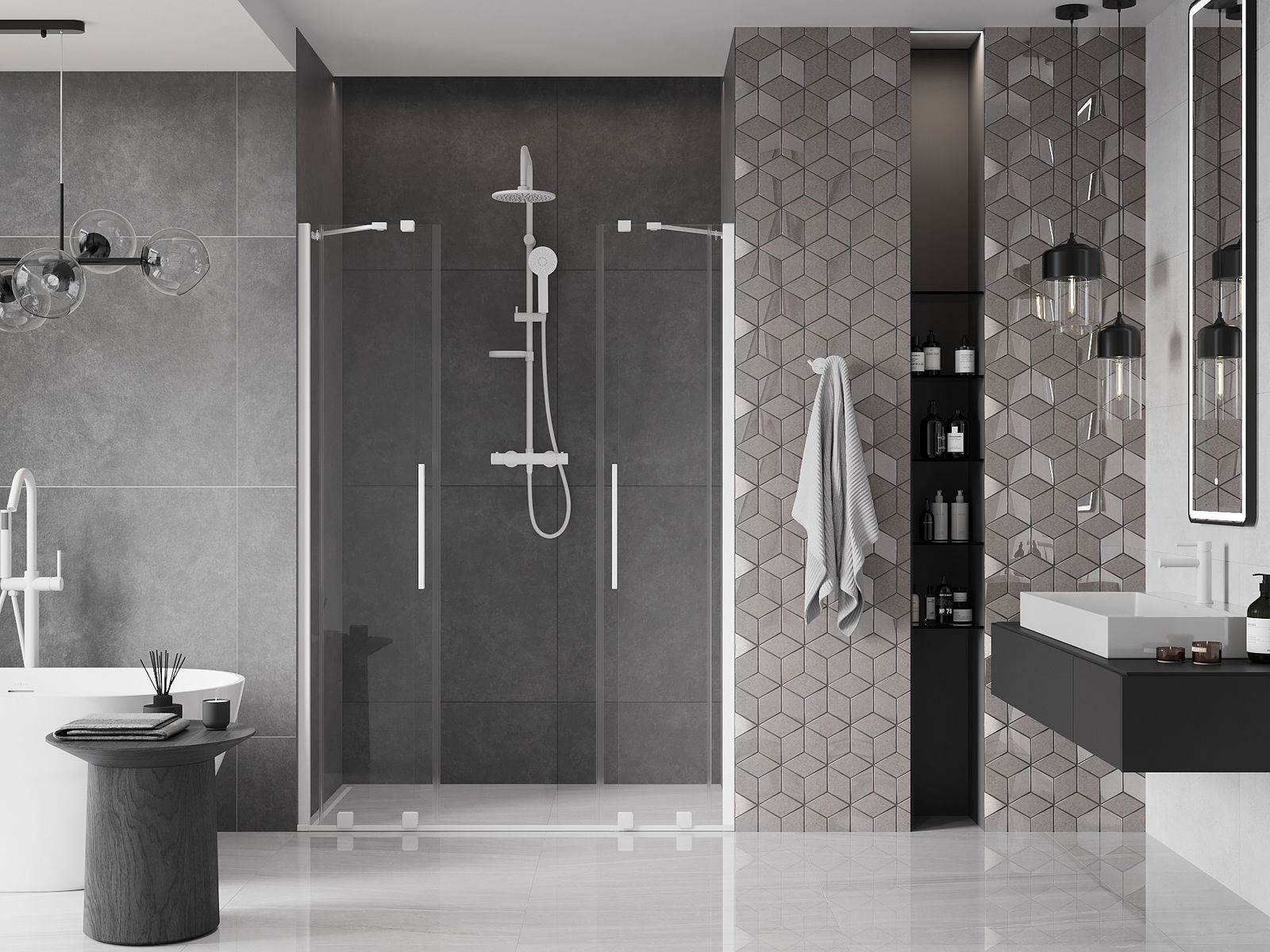 Díky použití univerzálního montážního systému mohou být sprchové dveře namontovány na pravé nebo levé straně, podle potřeby. Díky tomu můžete snadno navrhnout sprchu přizpůsobenou prostoru koupelny.
