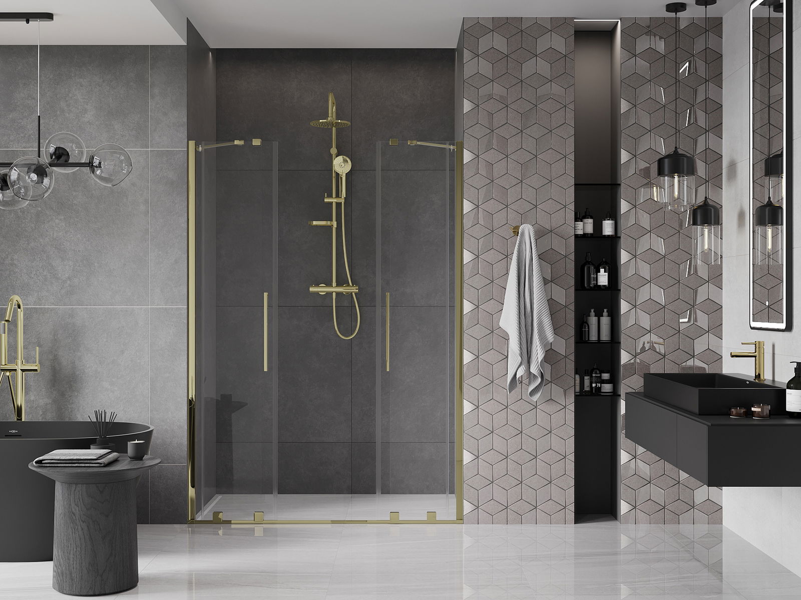 Mexen Velar Duo posuvné sprchové dveře 150 cm, transparentní, zlaté - 871-150-000-02-50