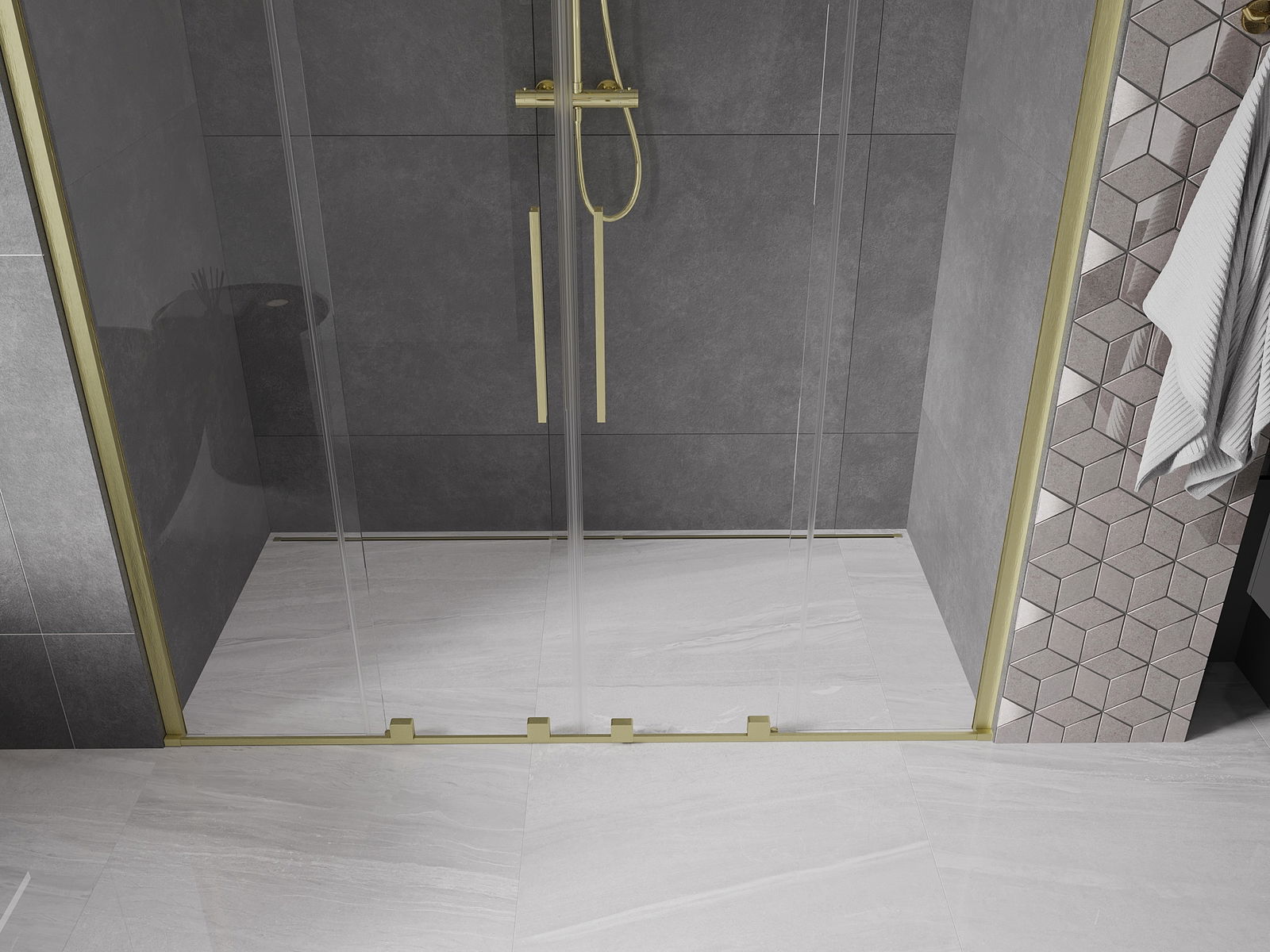 Mexen Velar Duo posuvné sprchové dveře 200 cm, průhledné, zlaté kartáčované - 871-200-000-02-55