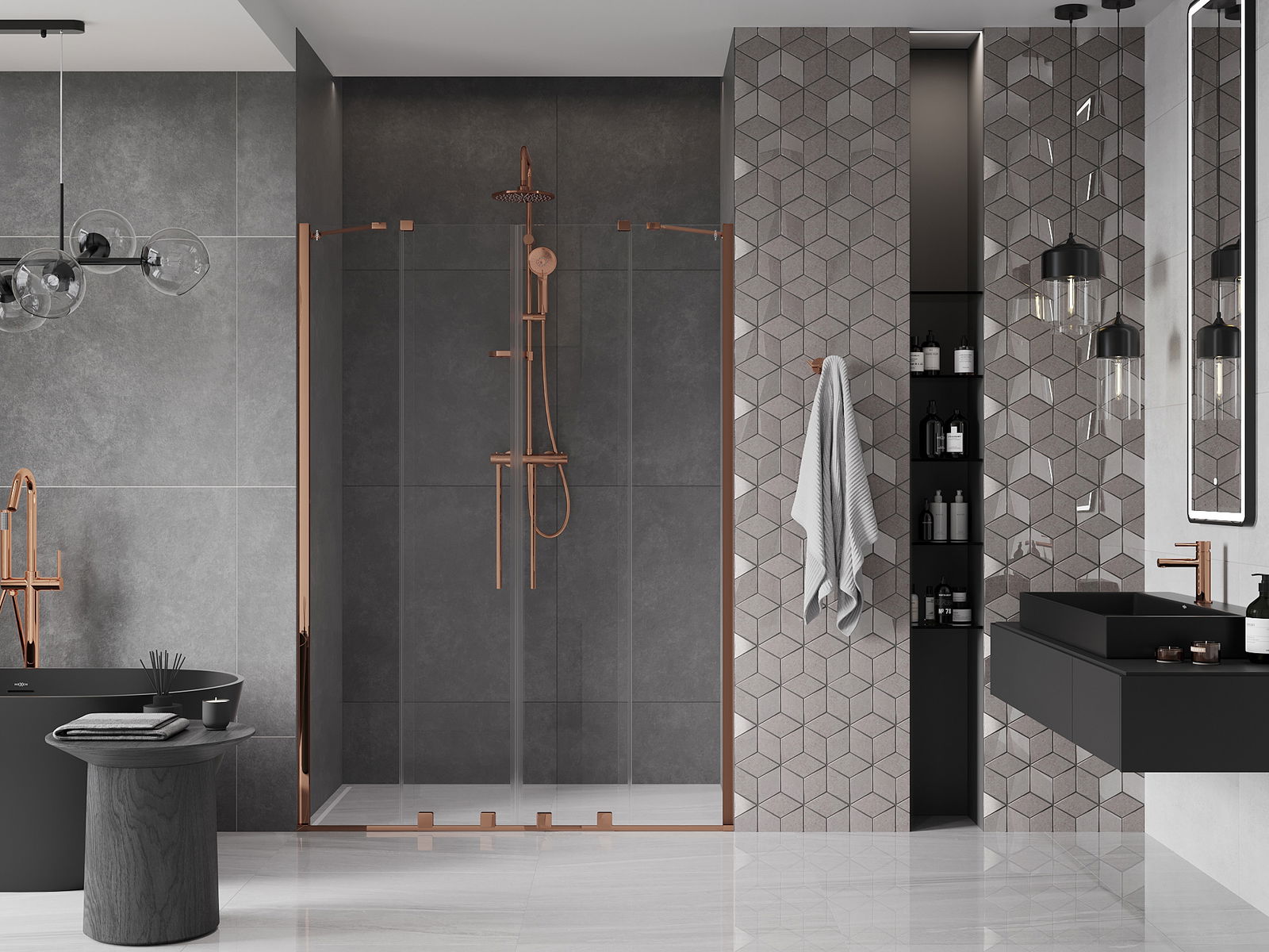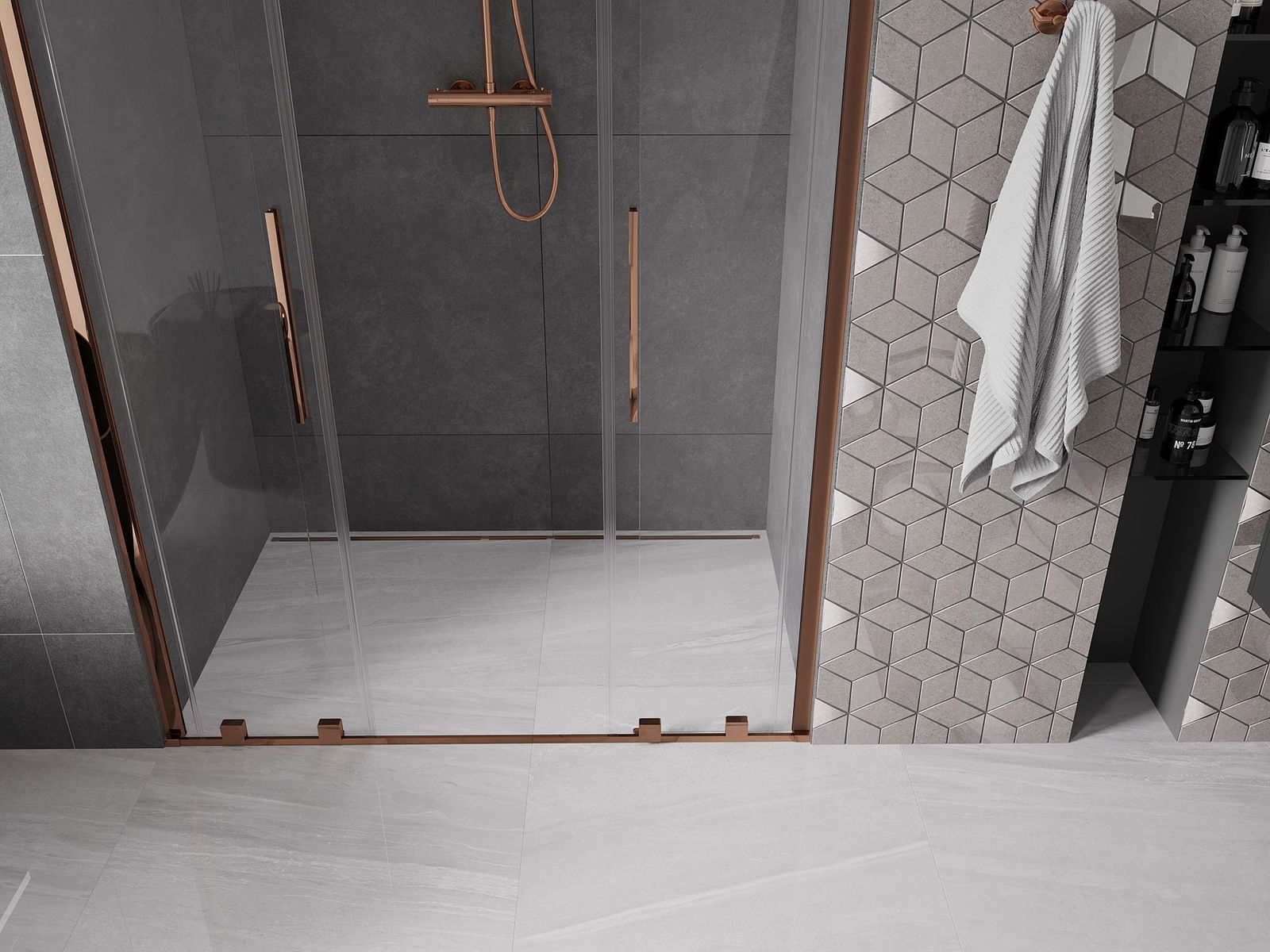 Mexen Velar Duo posuvné sprchové dveře 150 cm, transparentní, růžové zlato - 871-150-000-02-60