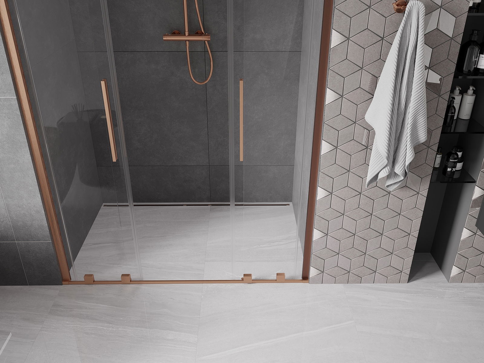 Mexen Velar Duo posuvné sprchové dveře 140 cm, transparentní, kartáčovaná měď - 871-140-000-02-65