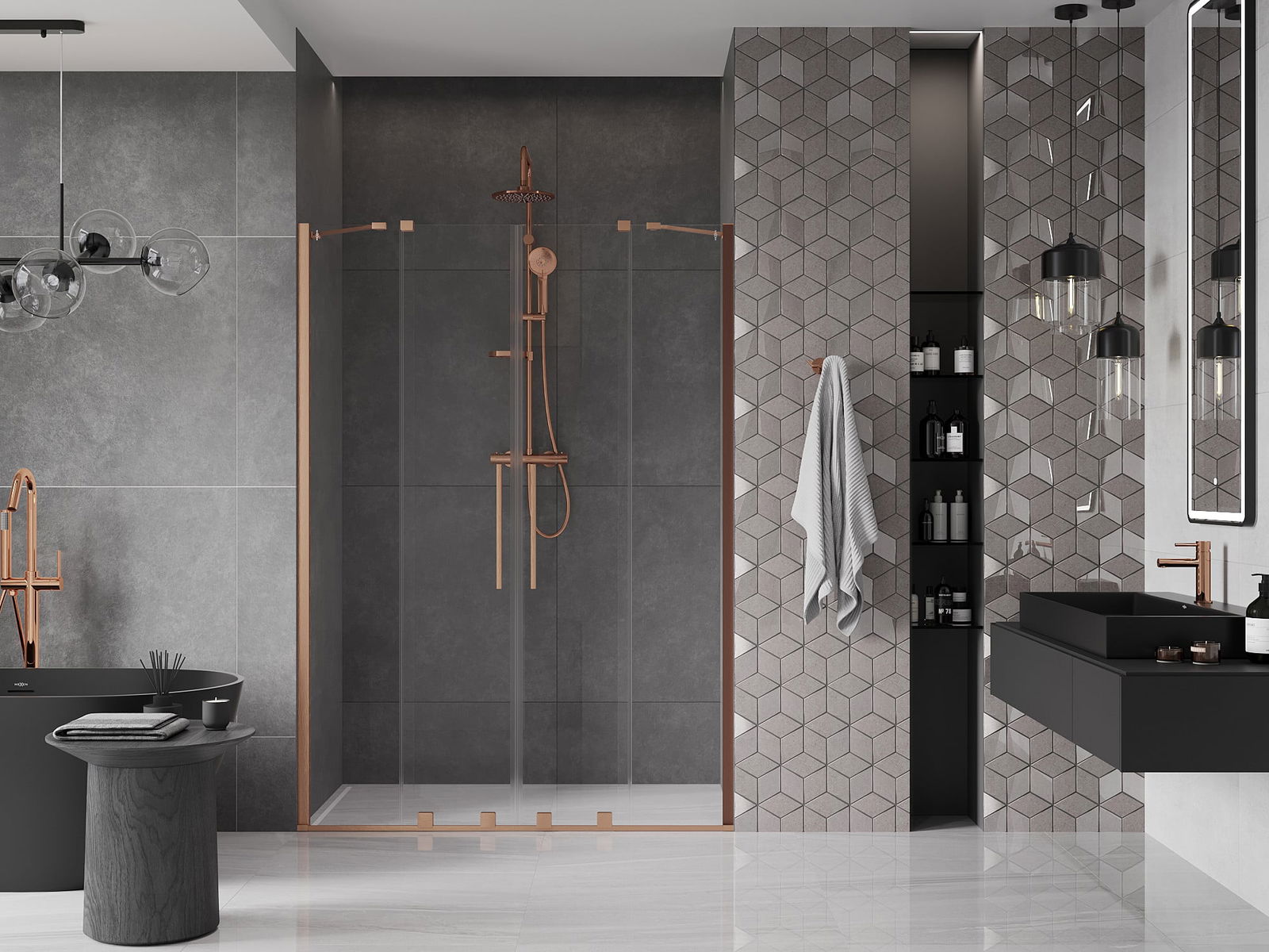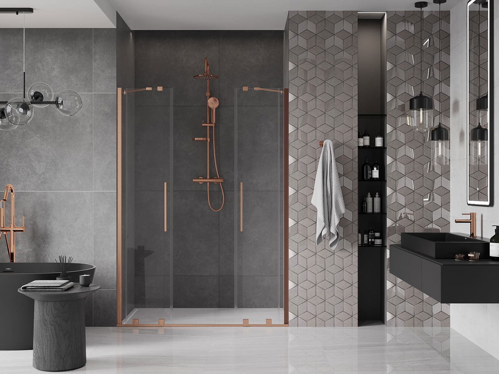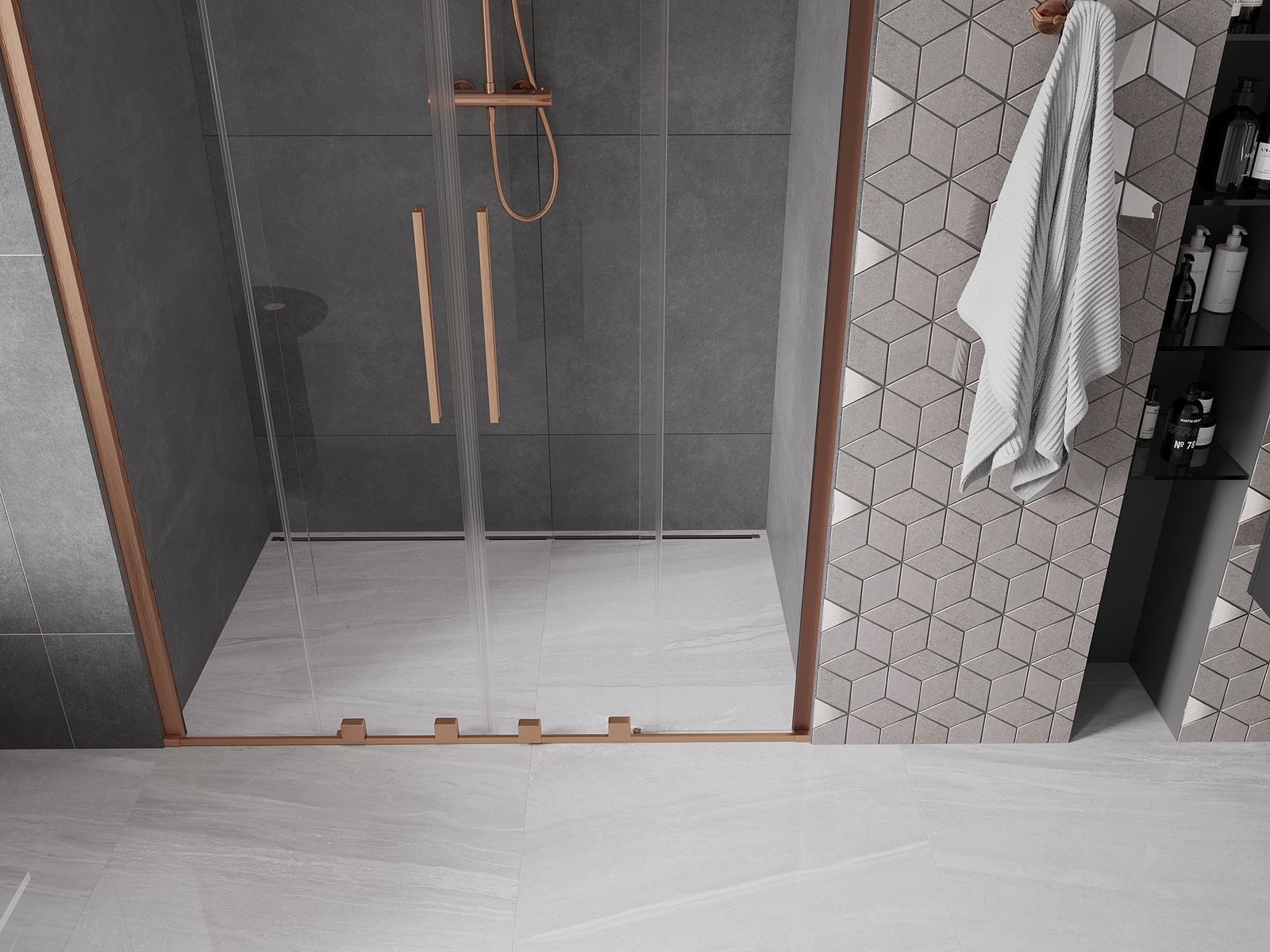 Praktický a pohodlný držák je vyroben z nerezové oceli. Moderní tvar ve spojení s povrchovou úpravou sladěnou s barvou profilů dodává celku moderní a stylový vzhled, zdůrazňující estetiku každé koupelny.