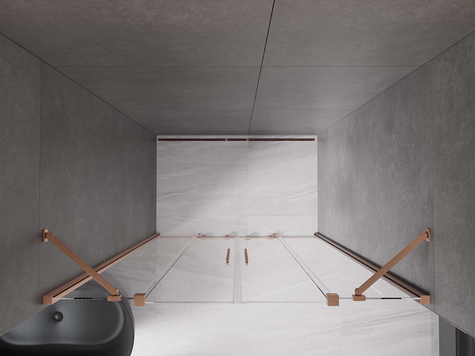 Mexen Velar Duo posuvné sprchové dveře 160 cm, transparentní, kartáčovaná měď - 871-160-000-02-65