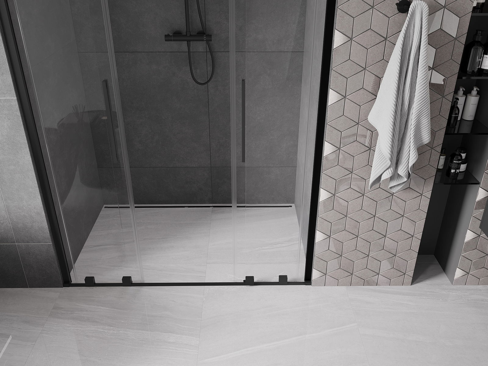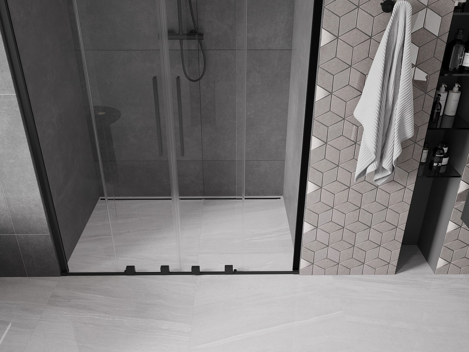 Praktický a pohodlný držák je vyroben z nerezové oceli. Moderní tvar ve spojení s povrchovou úpravou sladěnou s barvou profilů dodává celku moderní a stylový vzhled, zdůrazňující estetiku každé koupelny.