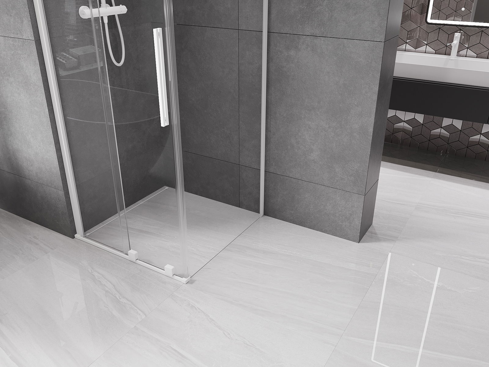 Produkt lze podle potřeby namontovat jak na sprchovou vaničku, tak přímo na podlahu. Univerzální způsob montáže umožňuje přizpůsobení produktu různým typům koupelen a konfiguracím prostor.