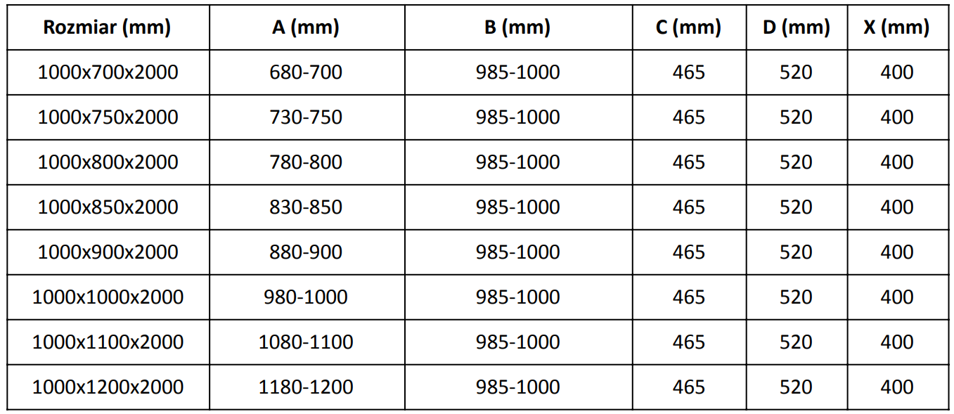 Velikost: 100x85 cm (dveře 100 cm, boční stěna 85 cm)