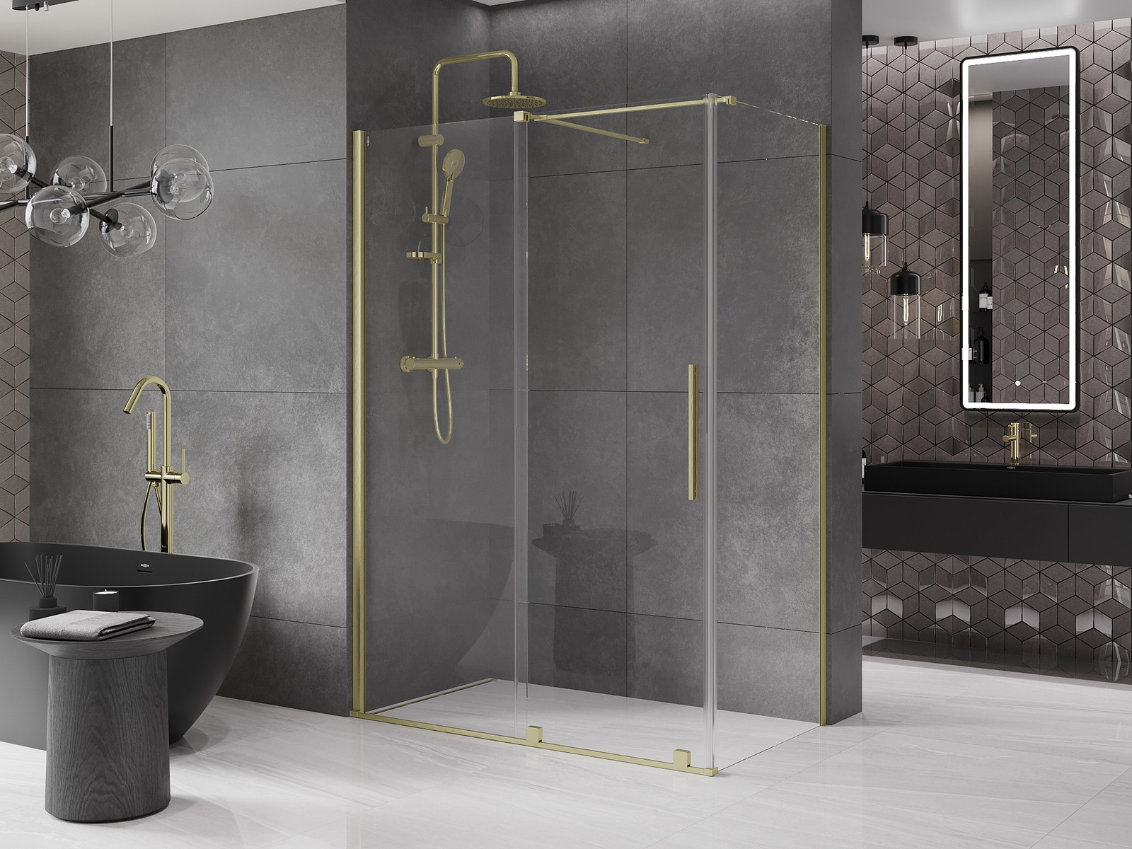 Mexen Velar sprchový kout posuvný 140 x 70 cm je skvělou volbou pro ty, kteří si cení moderního designu a funkčnosti. Velikost 140x70 cm a výška 200 cm zajišťují komfort používání. Univerzální montáž a možnost regulace šířky umožňují snadné přizpůsobení koupelně. Transparentní, tvrzené sklo o tloušťce 8 mm a zlatá kartáčovaná povrchová úprava dodávají eleganci. Posuvné dveře s jednotlivými válečky, rukojeť z nerezové oceli a systém odvádění vody zajišťují spolehlivost a pohodlí. Hliníkový prah těsnící a vrstva usnadňující čištění dále zvyšují praktičnost výrobku.