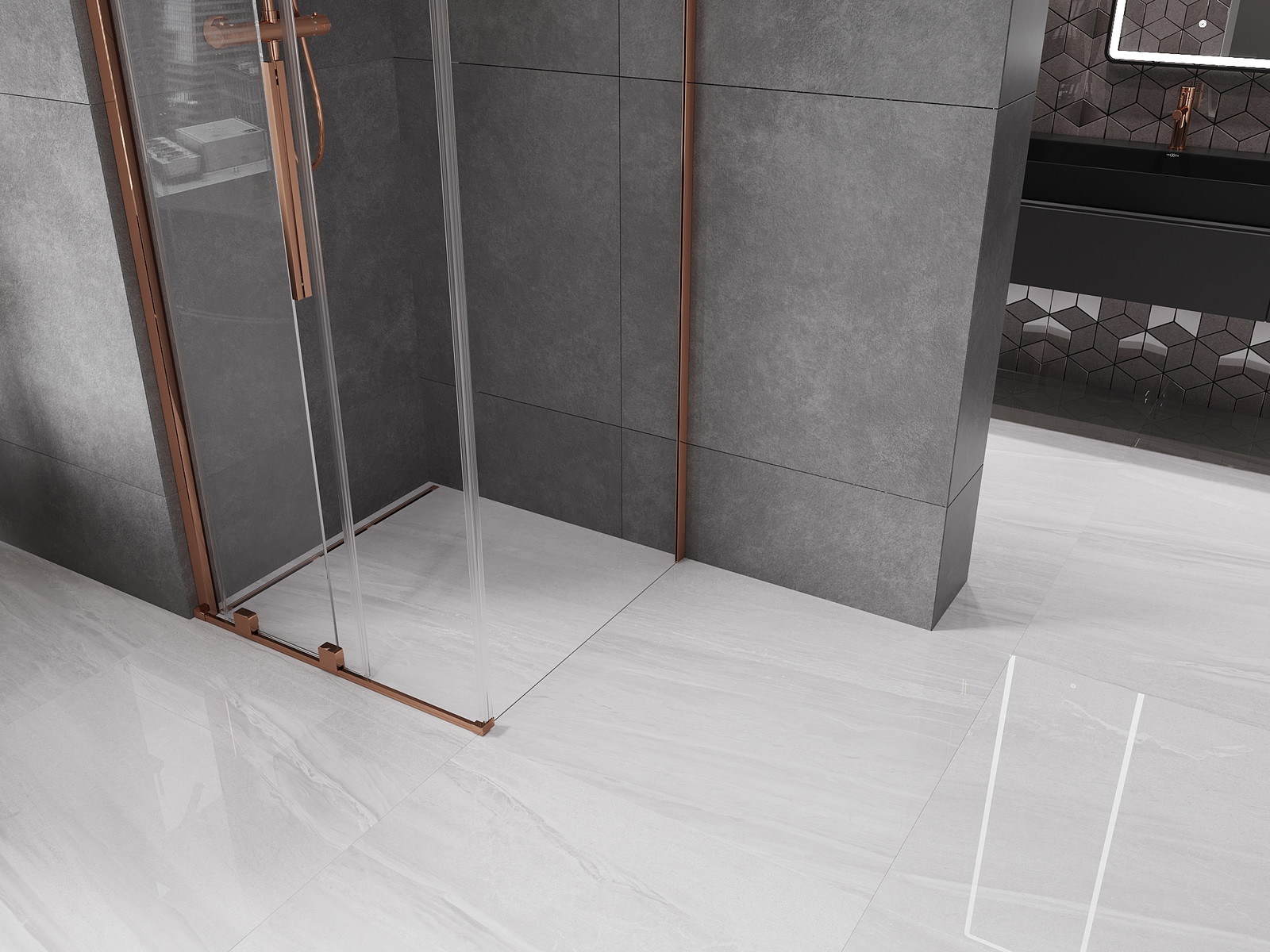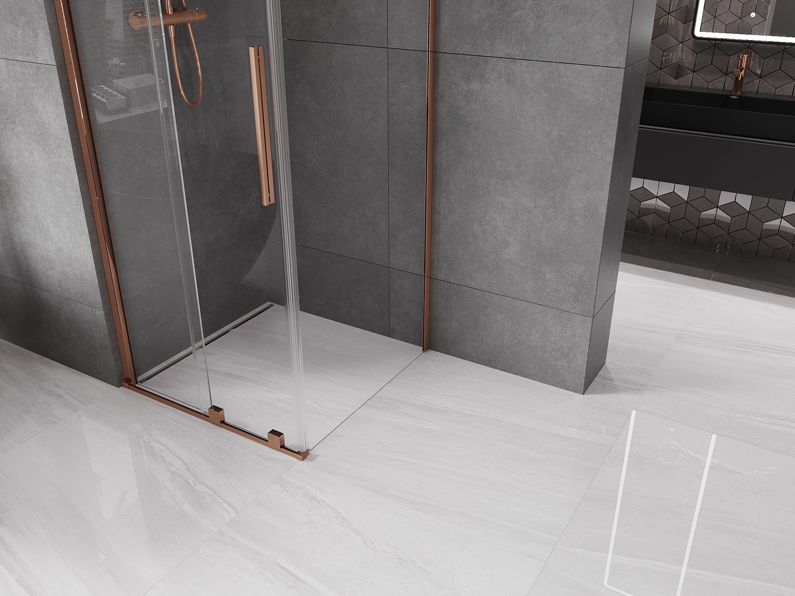 Mexen Velar je moderní posuvná sprchová kabina o rozměrech 100 x 100 cm, nabízející elegantní vzhled díky povrchové úpravě v barvě růžového zlata. Univerzální montáž a posuvné dveře zajišťují pohodlné používání, zatímco průhledné tvrzené sklo o tloušťce 8 mm zaručuje bezpečnost a estetiku. Pevný hliníkový profil a nerezová ocelová rukojeť zdůrazňují trvanlivost konstrukce. Kabina má povlak usnadňující čištění a možnost instalace jak na vaničku, tak přímo na dlaždice. Individuálně nastavitelné válečky zajišťují plynulé posouvání a sada vodotěsných těsnění se stará o těsnost. Možnost regulace šířky a přizpůsobení křivosti stěn je další výhodou.