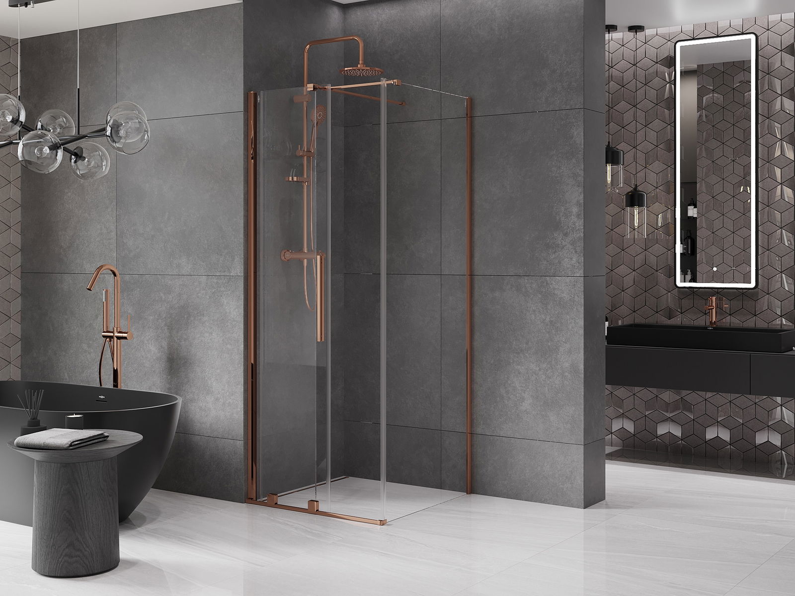 Mexen Velar sprchová kabina posuvná 100 x 100 cm, transparentní, růžové zlato - 871-100-100-01-60