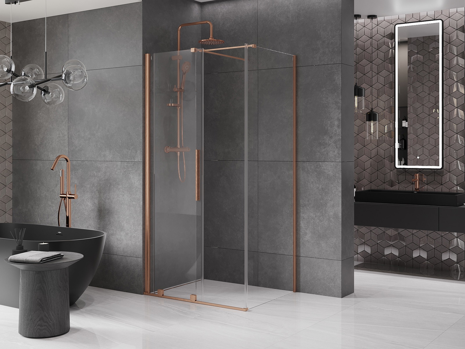 Mexen Velar sprchový kout je ideální volbou pro moderní koupelny. Jeho rozměr 100x75 cm a univerzální montáž umožňují přizpůsobení různým interiérům. Výška 200 cm a posuvné dveře zajišťují pohodlné používání. Transparentní tvrzené sklo o tloušťce 8 mm s povlakem usnadňujícím čištění kombinuje estetiku s funkčností. Kartáčovaná měď a hliníkový profil dodávají eleganci. Kout nabízí šířkovou regulaci a možnost montáže na sprchové vaničce nebo dlaždicích, a odolné proti opotřebení kolečka zajišťují dlouhou životnost.