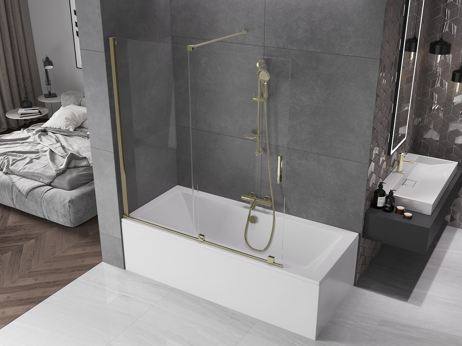 Mexen Velar vanová zástěna 2-dílná posuvná 150 x 150 cm, transparentní, zlatá - 896-150-000-01-50