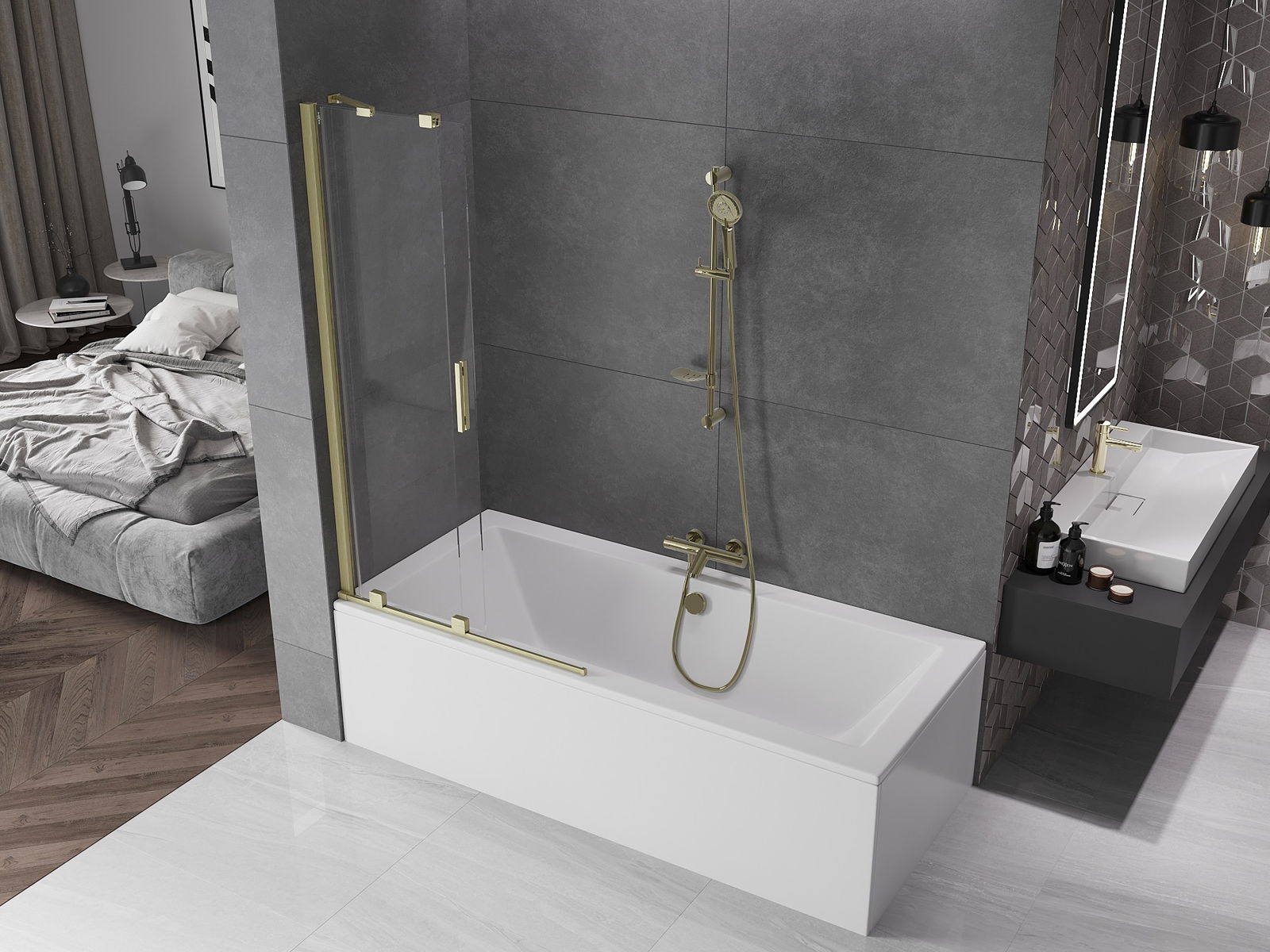 Mexen Velar vanová zástěna 2křídlová posuvná 90 x 150 cm, transparentní, zlatý kartáčovaný - 896-090-000-01-55