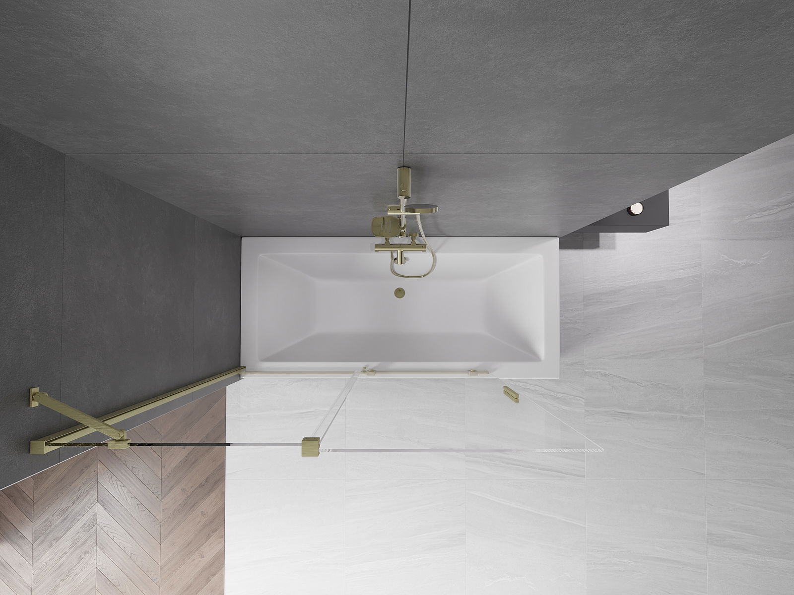 Mexen Velar 2-křídlová roleta na vanu, posuvná 140 x 150 cm, transparentní, zlatý kartáčovaný - 896-140-000-01-55