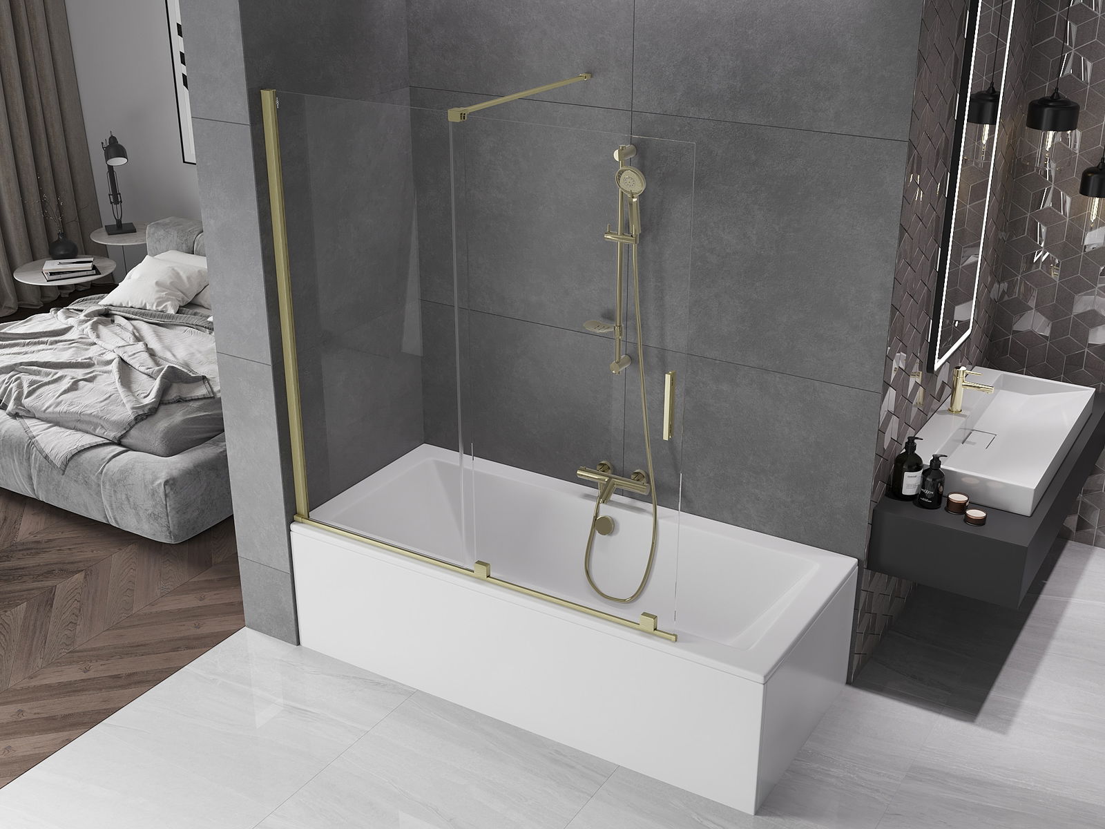 Mexen Velar vanová zástěna 2-dílná posuvná 150 x 150 cm, transparentní, zlatá kartáčovaná - 896-150-000-01-55