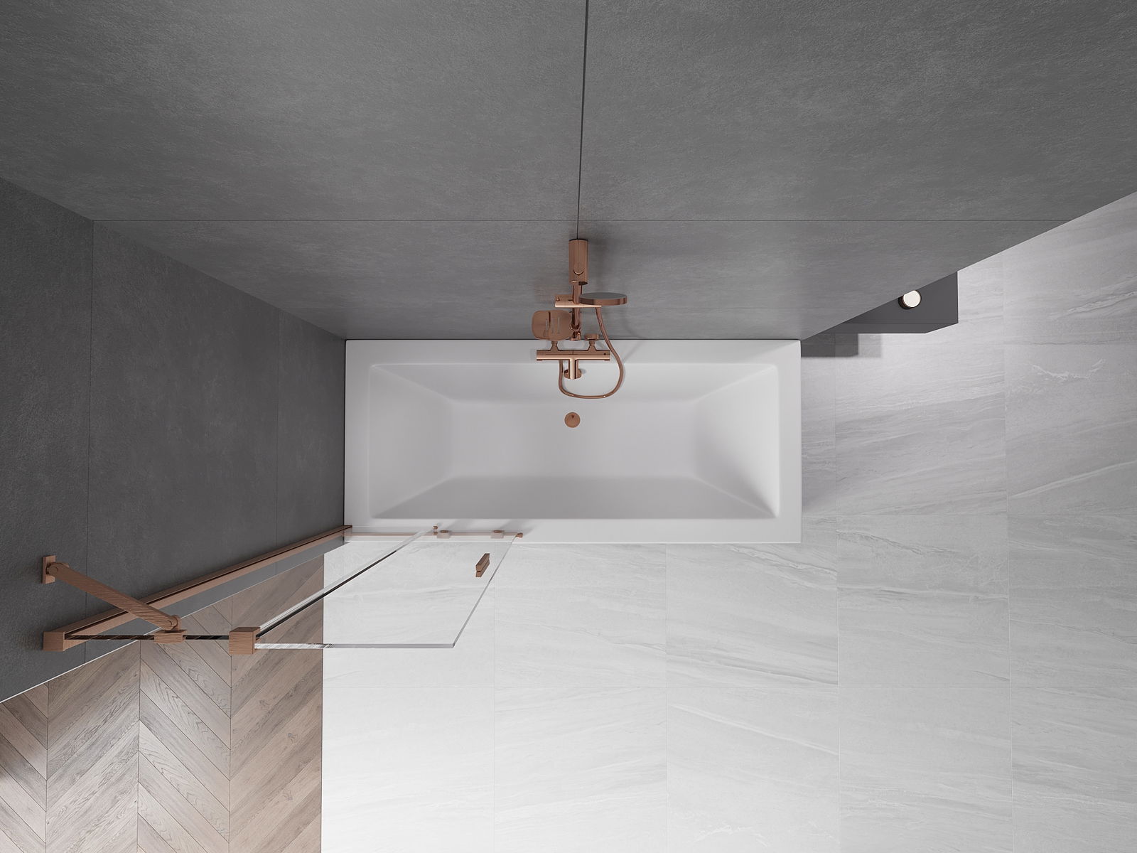 Mexen Velar vanová zástěna dvoukřídlá posuvná 75 x 150 cm, transparentní, kartáčovaná měď - 896-075-000-01-65