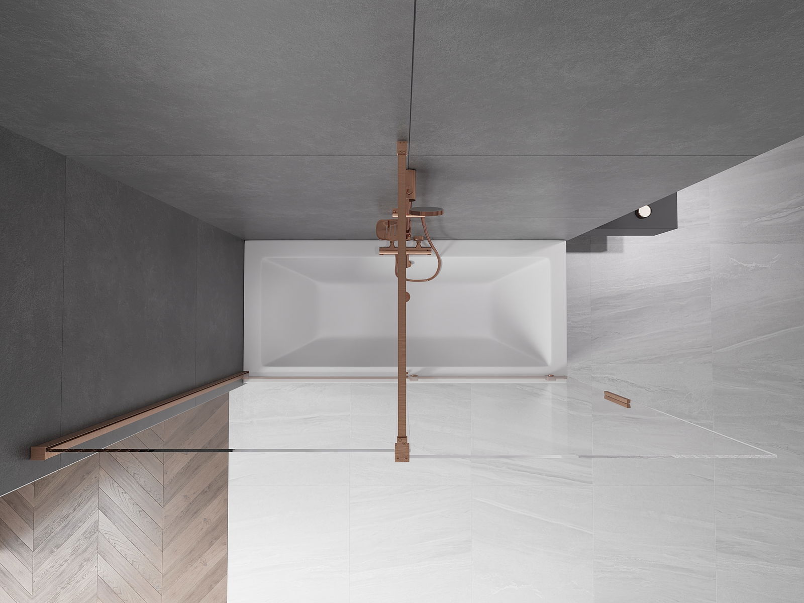 Mexen Velar vanová zástěna 2-křídlová posuvná 180 x 150 cm, transparentní, kartáčovaná měď - 896-180-000-01-65