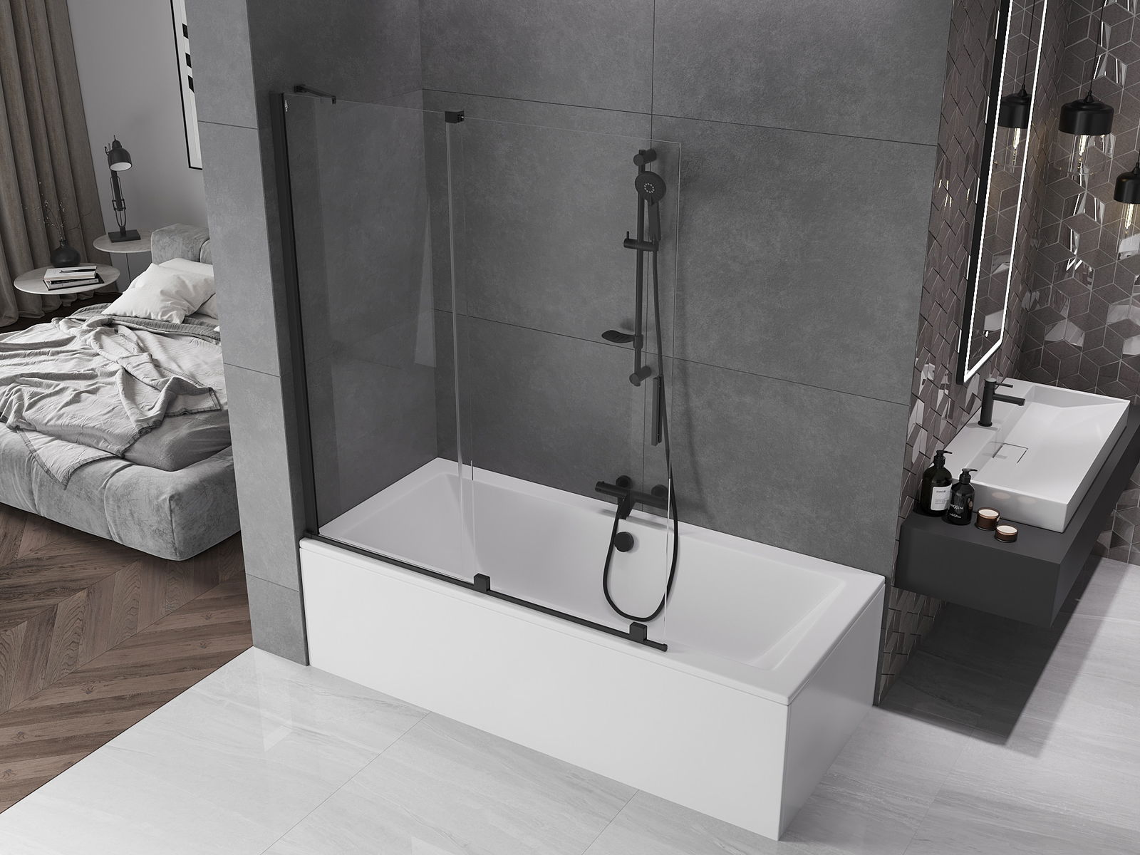 Mexen Velar vanová zástěna 2-křídlová posuvná 140 x 150 cm, transparentní, černá - 896-140-000-01-70