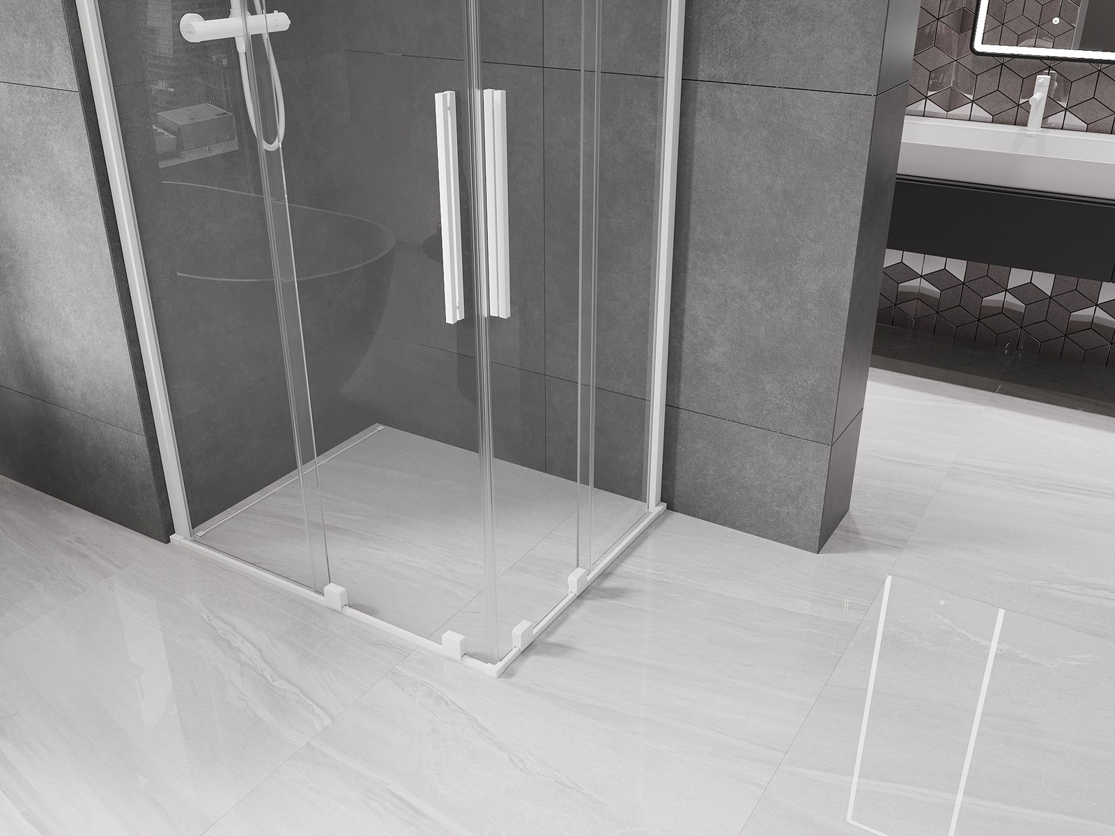 Produkt lze podle potřeby namontovat jak na sprchovou vaničku, tak přímo na podlahu. Univerzální způsob montáže umožňuje přizpůsobení produktu různým typům koupelen a konfiguracím prostor.