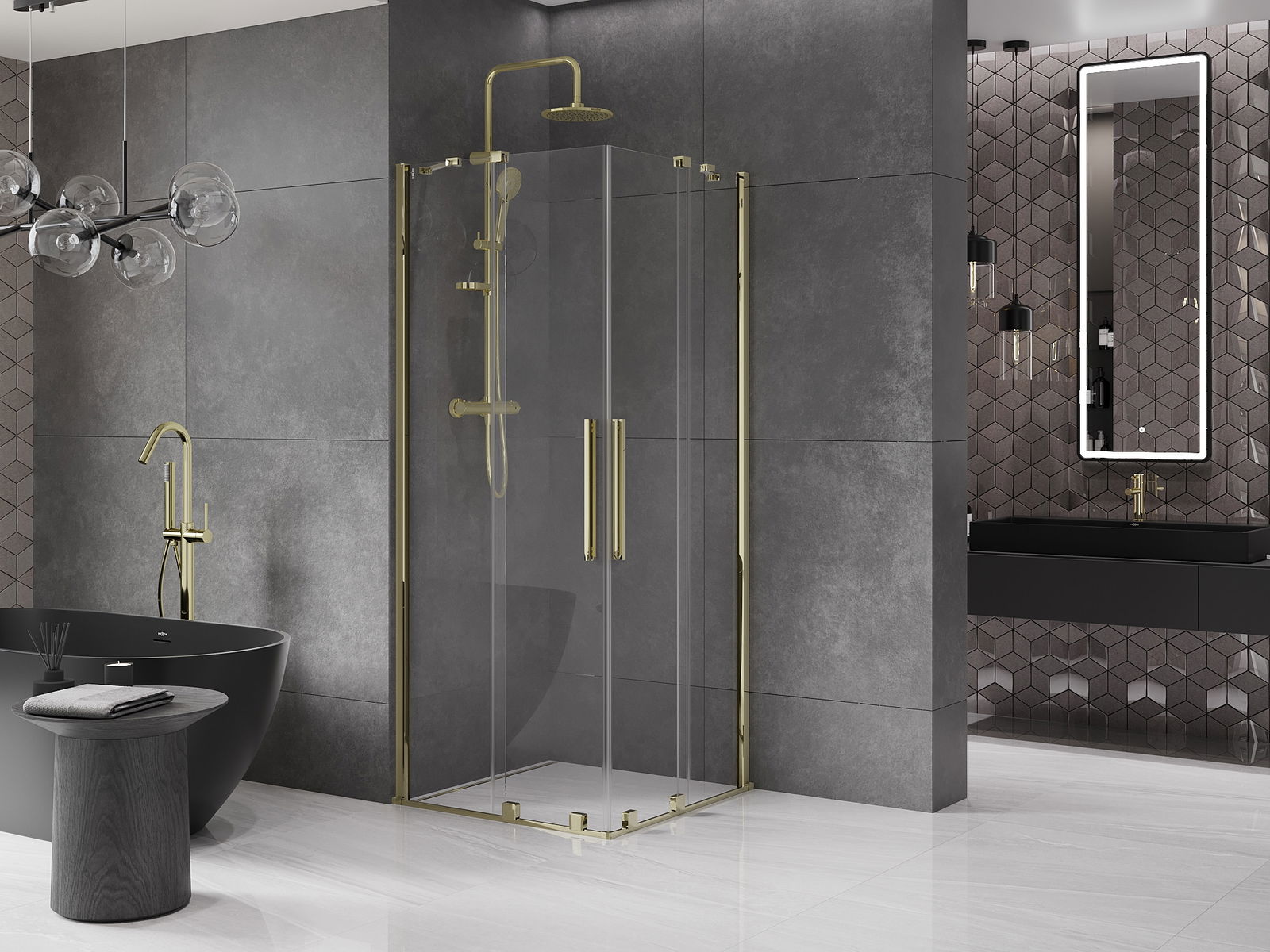 Mexen Velar Duo posuvná sprchová kabina 100 x 100 cm, transparentní, zlatá - 871-100-100-02-50