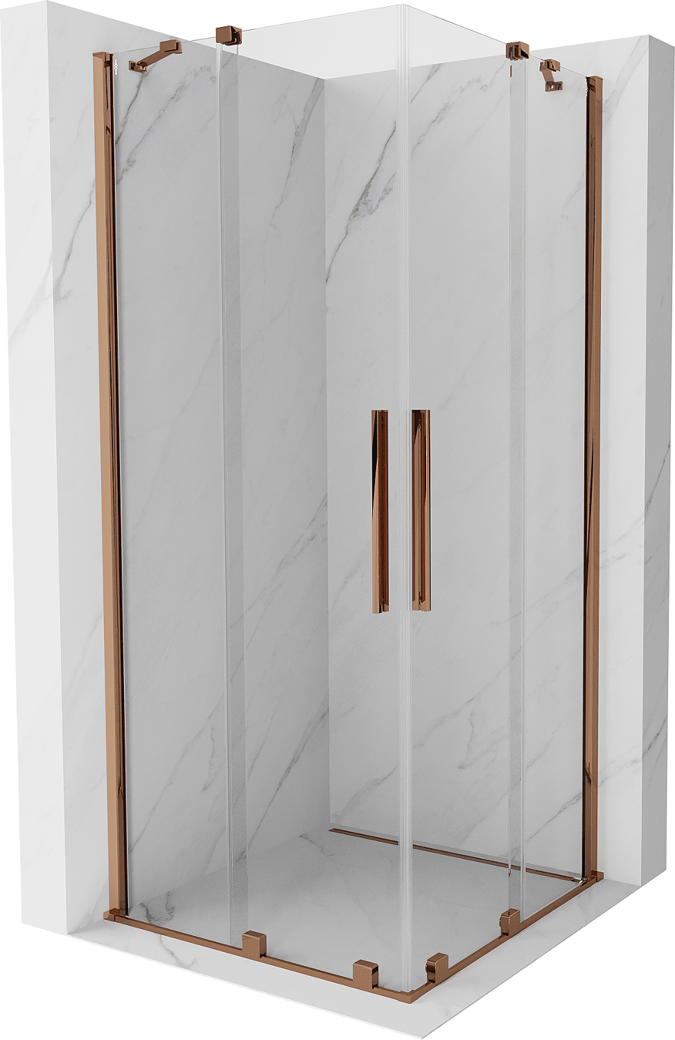 Mexen Velar Duo sprchová kabina posuvná 80 x 80 cm, transparentní, růžové zlato - 871-080-080-02-60