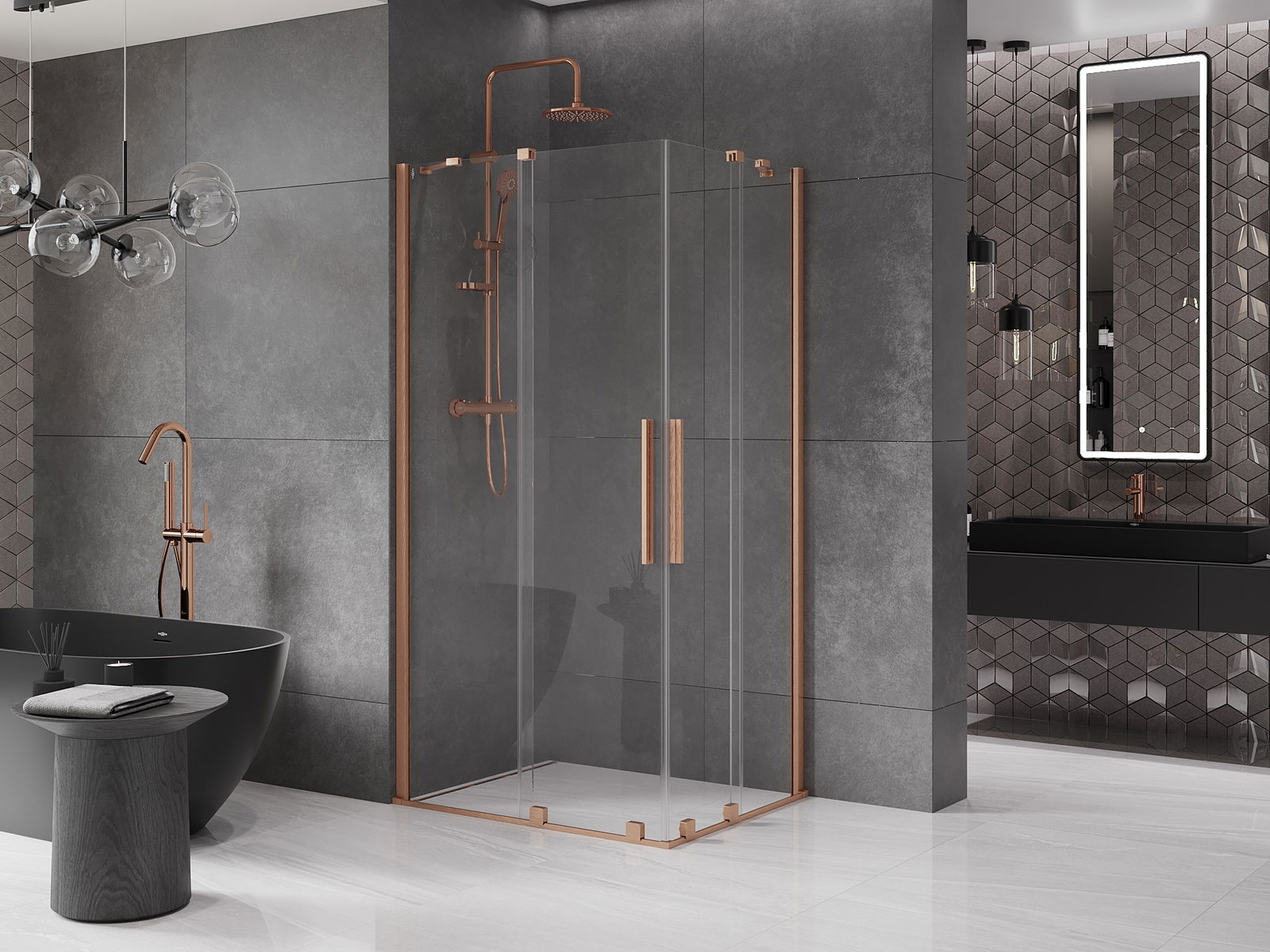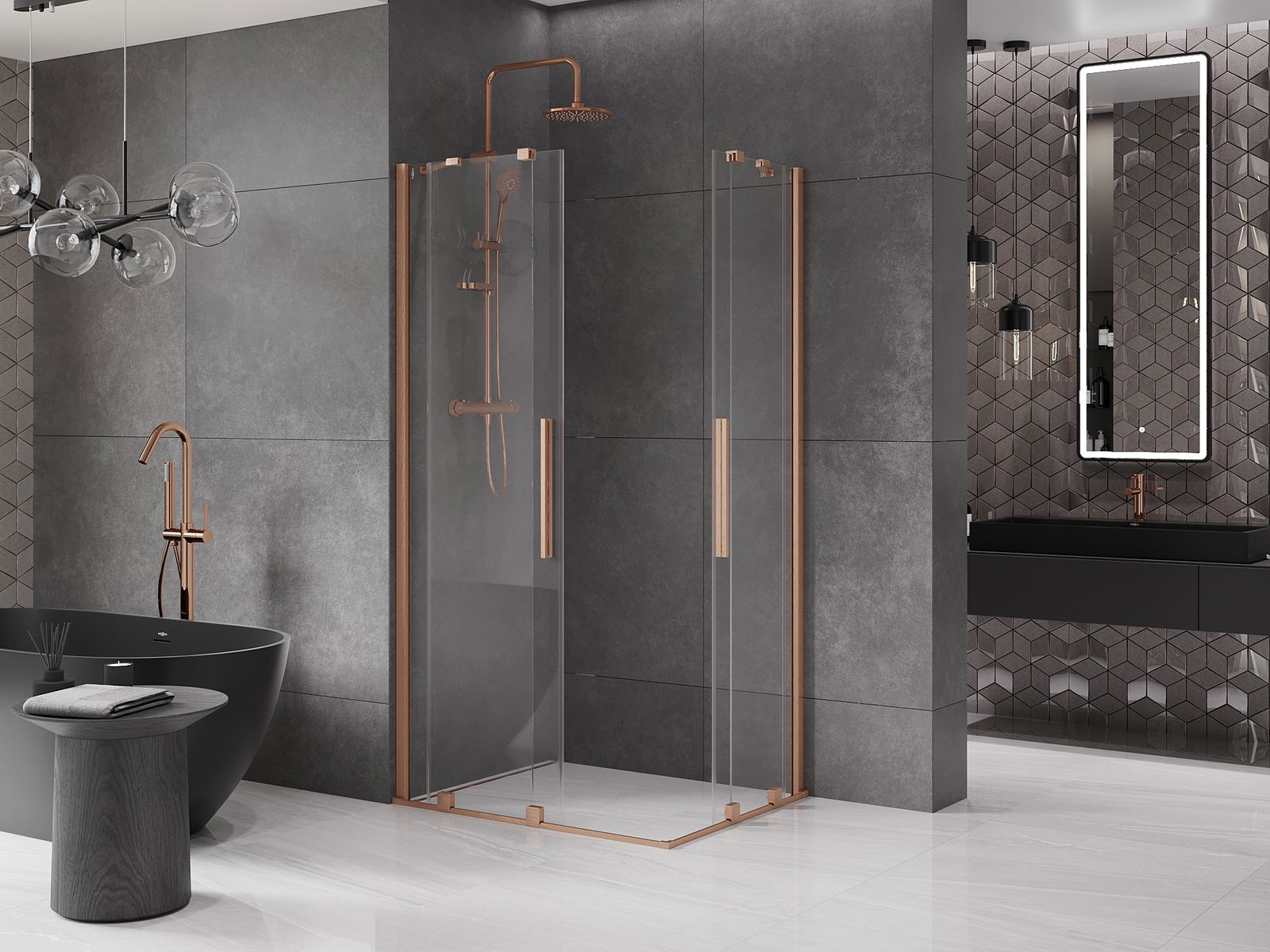 Mexen Velar Duo posuvná sprchová kabina 100 x 90 cm, transparentní, kartáčovaná měď - 871-100-090-02-65