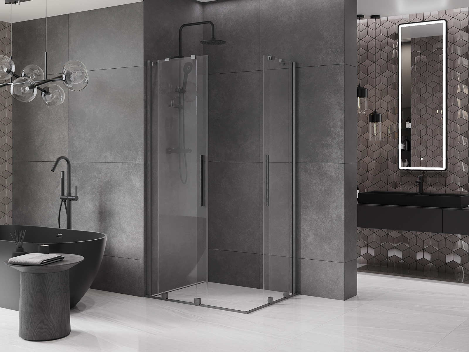 Mexen Velar Duo posuvná sprchová kabina 90 x 80 cm, transparentní, kartáčovaná gun gray - 871-090-080-02-66