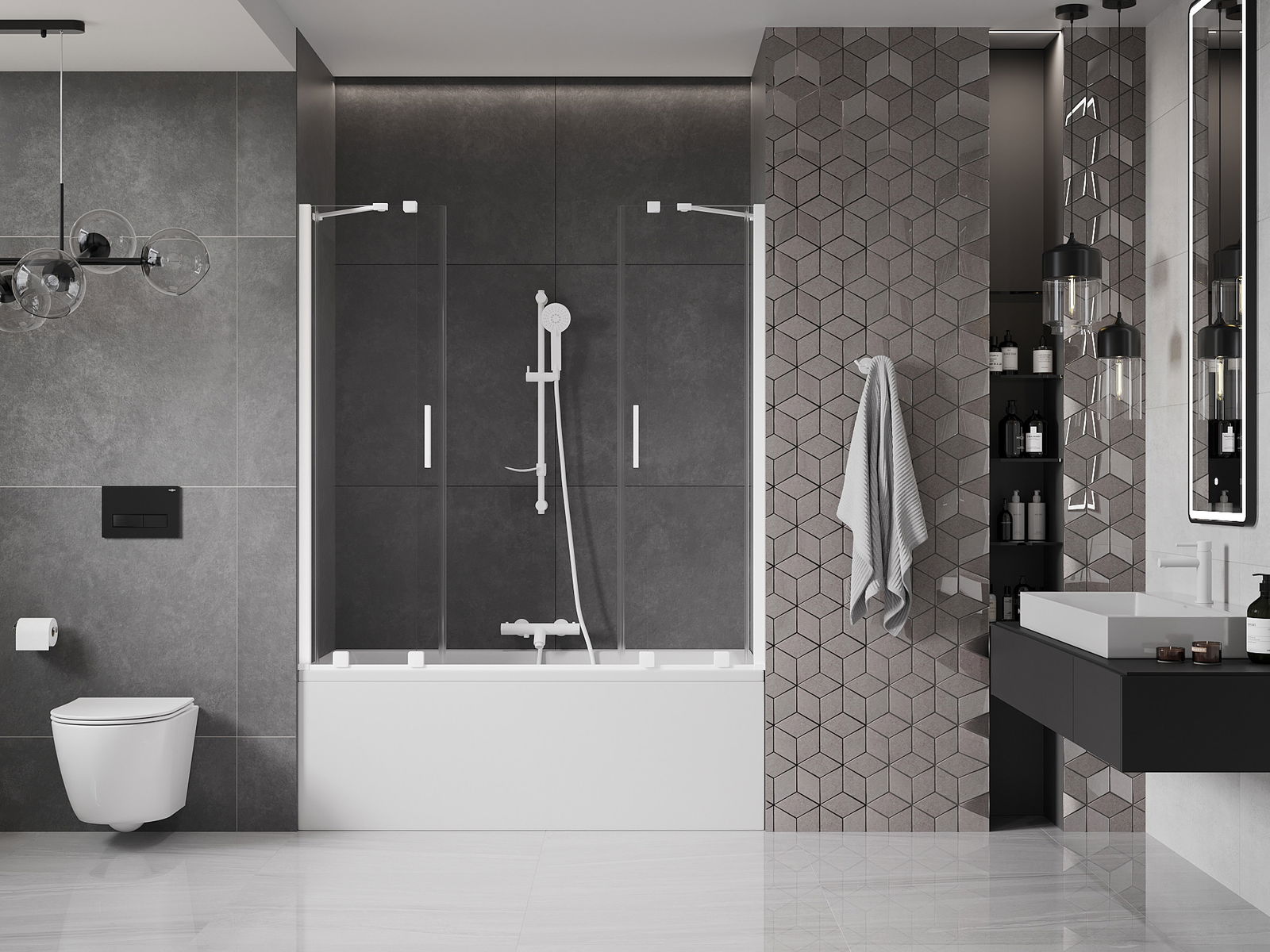 Mexen Velar Duo vanová zástěna 2-křídlá posuvná 160 x 150 cm, transparentní, bílá - 896-160-000-02-20