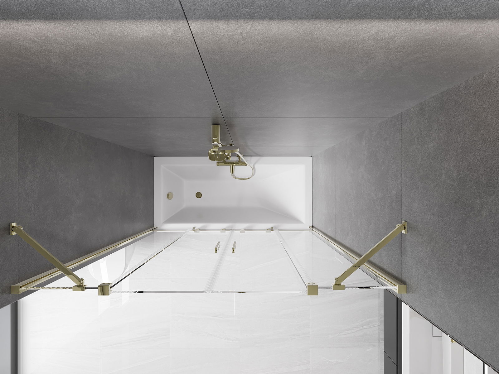 Mexen Velar Duo vanová zástěna dvoukřídlá posuvná 150 x 150 cm, transparentní, zlatá - 896-150-000-02-50