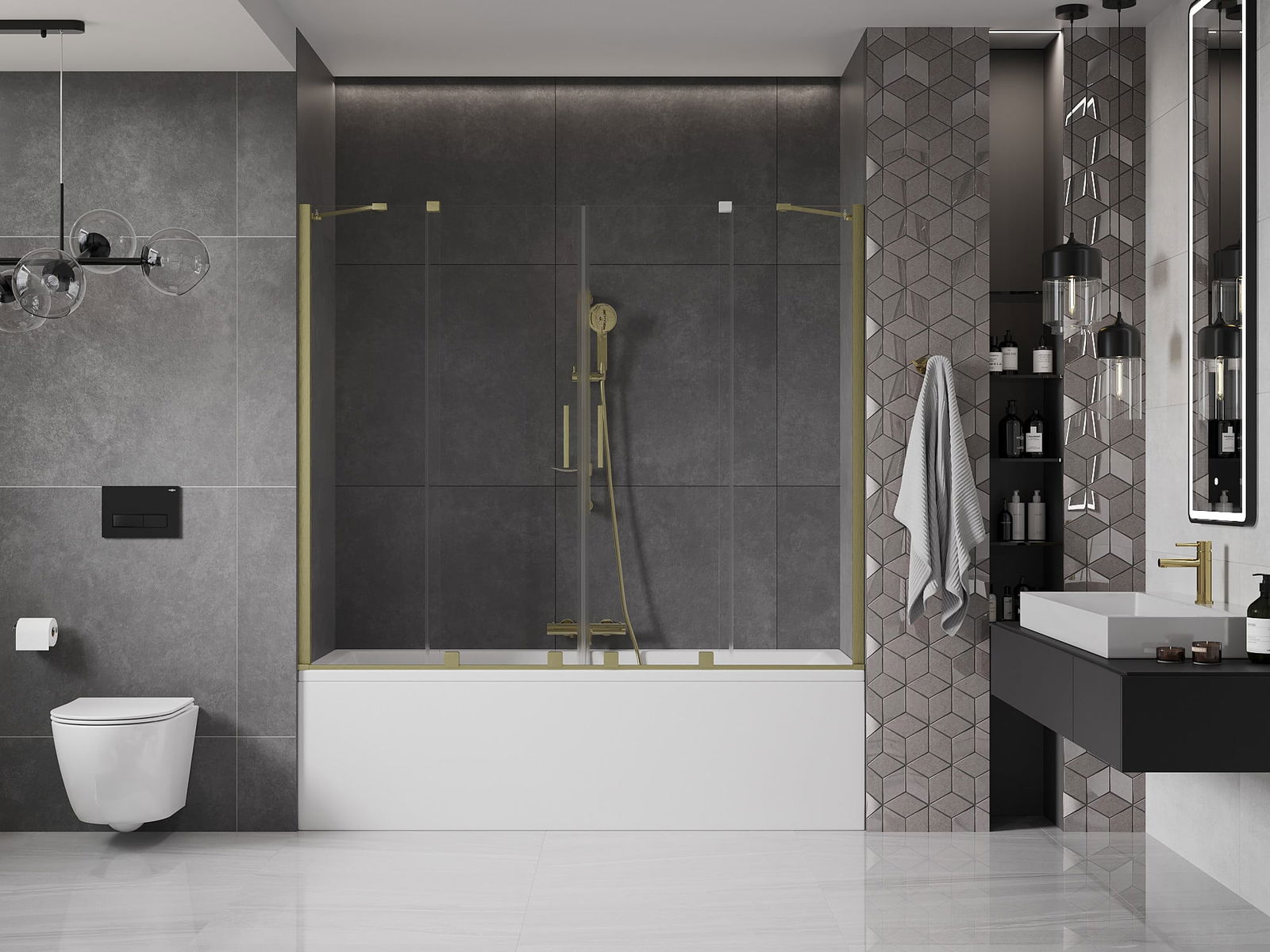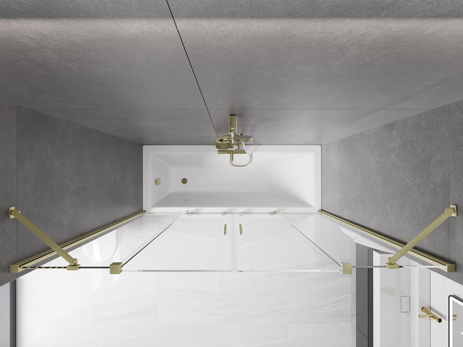 Mexen Velar Duo vanová zástěna 2-křídlová posuvná 170 x 150 cm, transparentní, zlatý kartáčovaný - 896-170-000-02-55