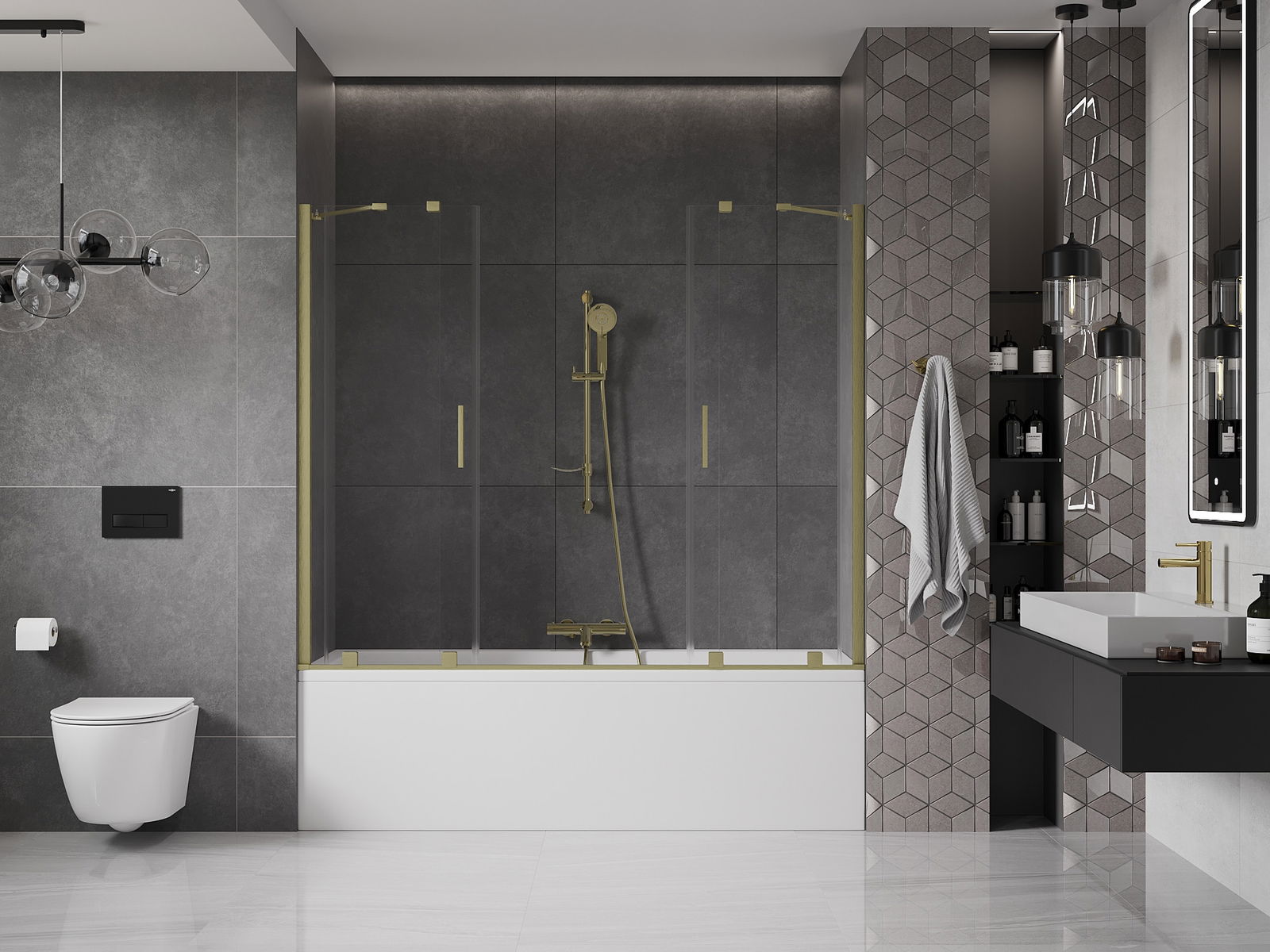 Mexen Velar Duo vanová zástěna, dvoukřídlá, posuvná, 200 x 150 cm, transparentní, zlatá kartáčovaná - 896-200-000-02-55