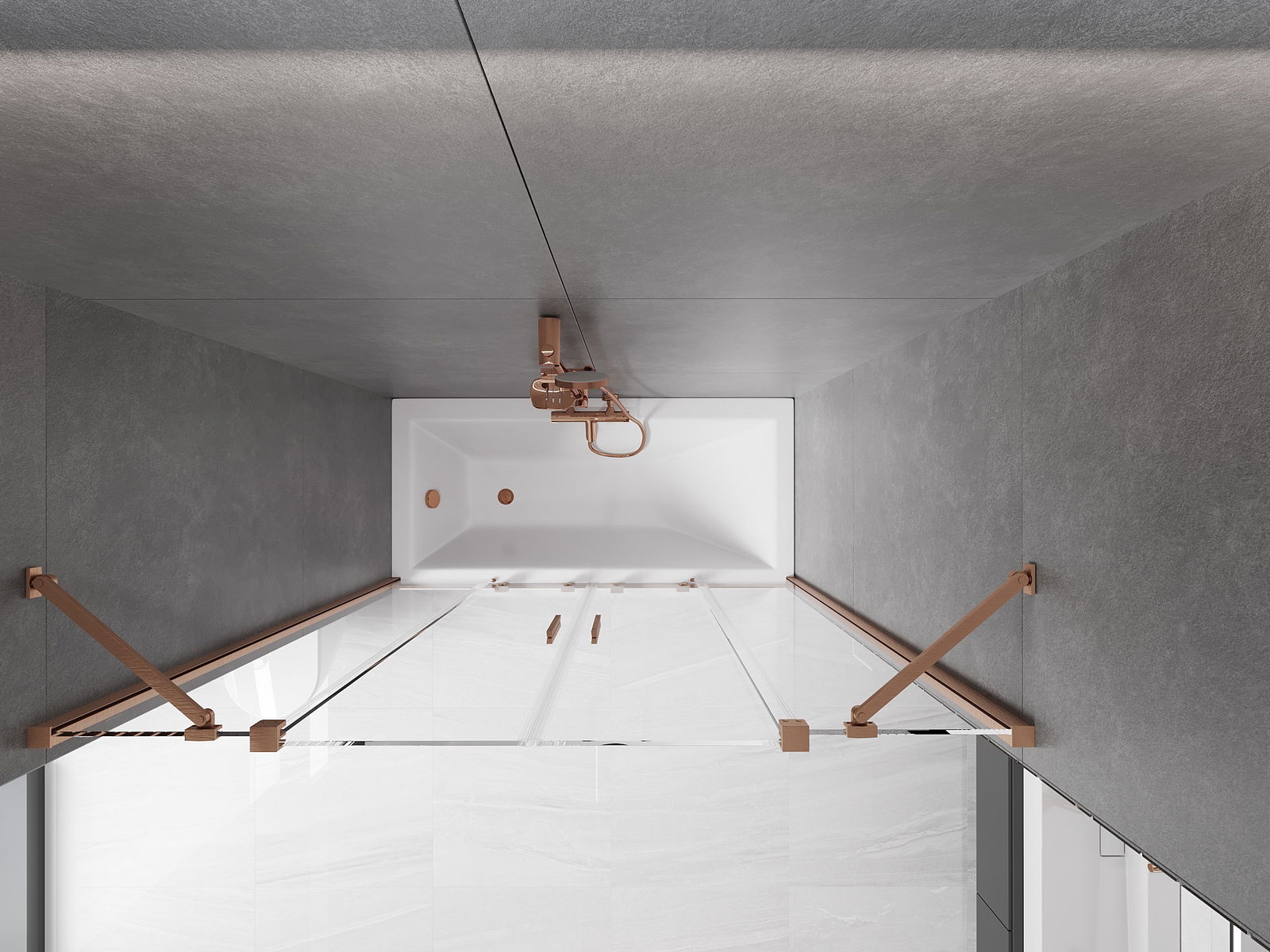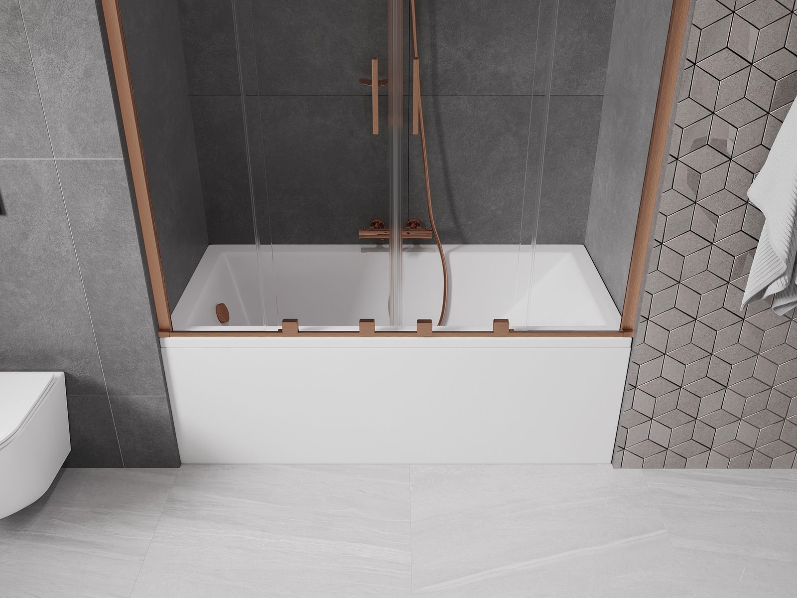 Mexen Velar Duo vanová zástěna 2-křídlová posuvná 150 x 150 cm, transparentní, kartáčovaná měď - 896-150-000-02-65