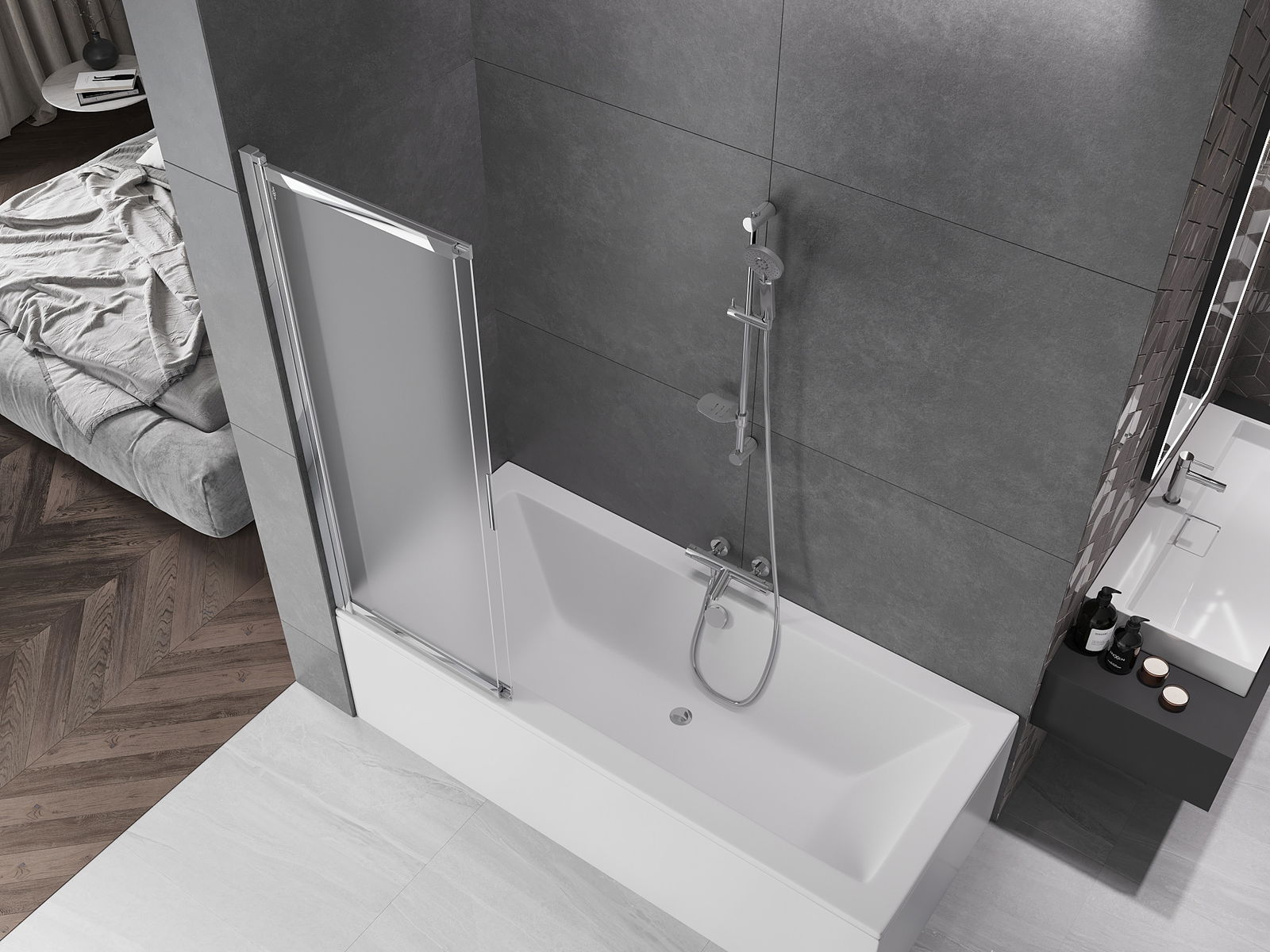 Účinná ochrana před rozléváním vody během koupání. Paraván má těsnění, která se ideálně přizpůsobují skleněné desce a okraji vany. Funkční řešení zajišťující bezpečnost a snadnou údržbu čistoty.