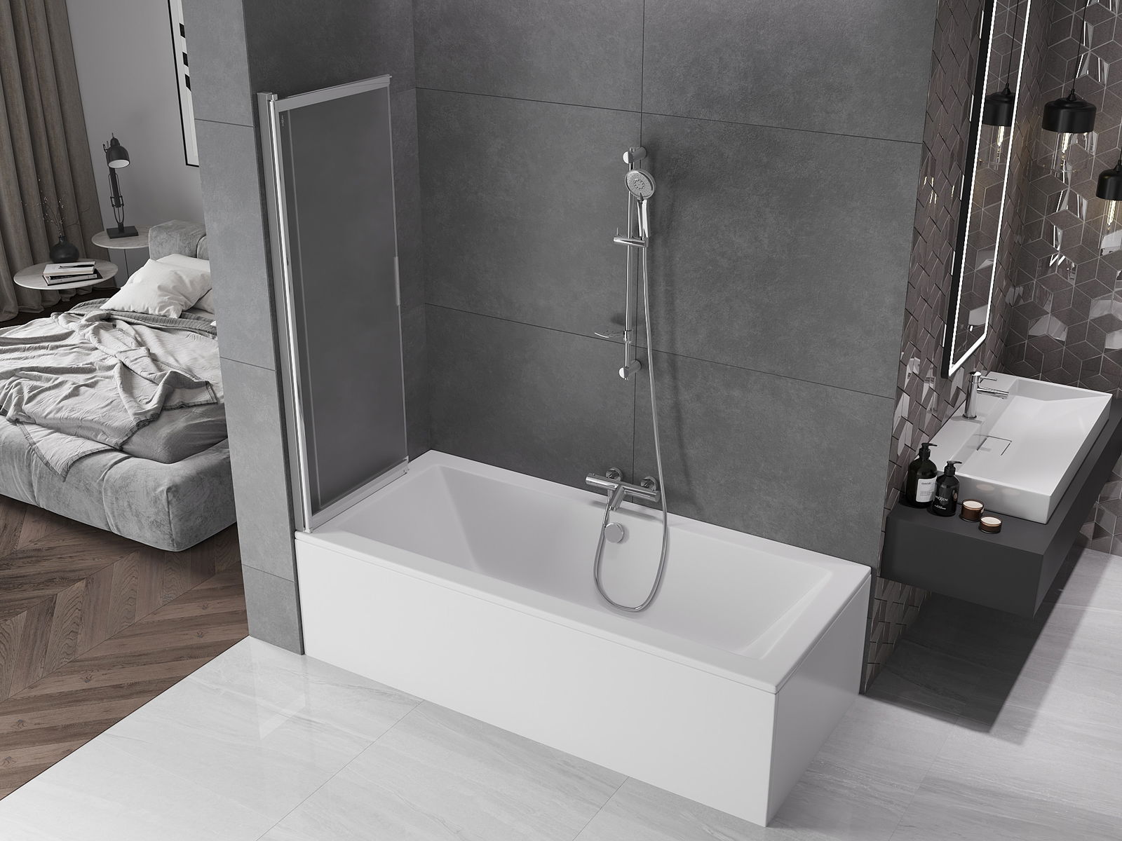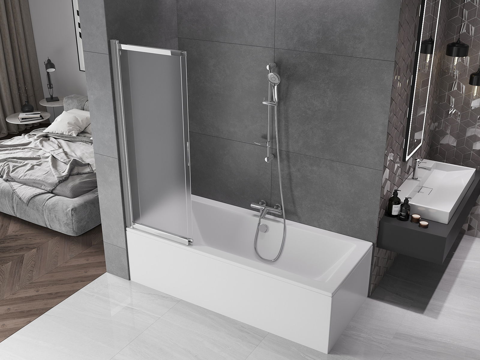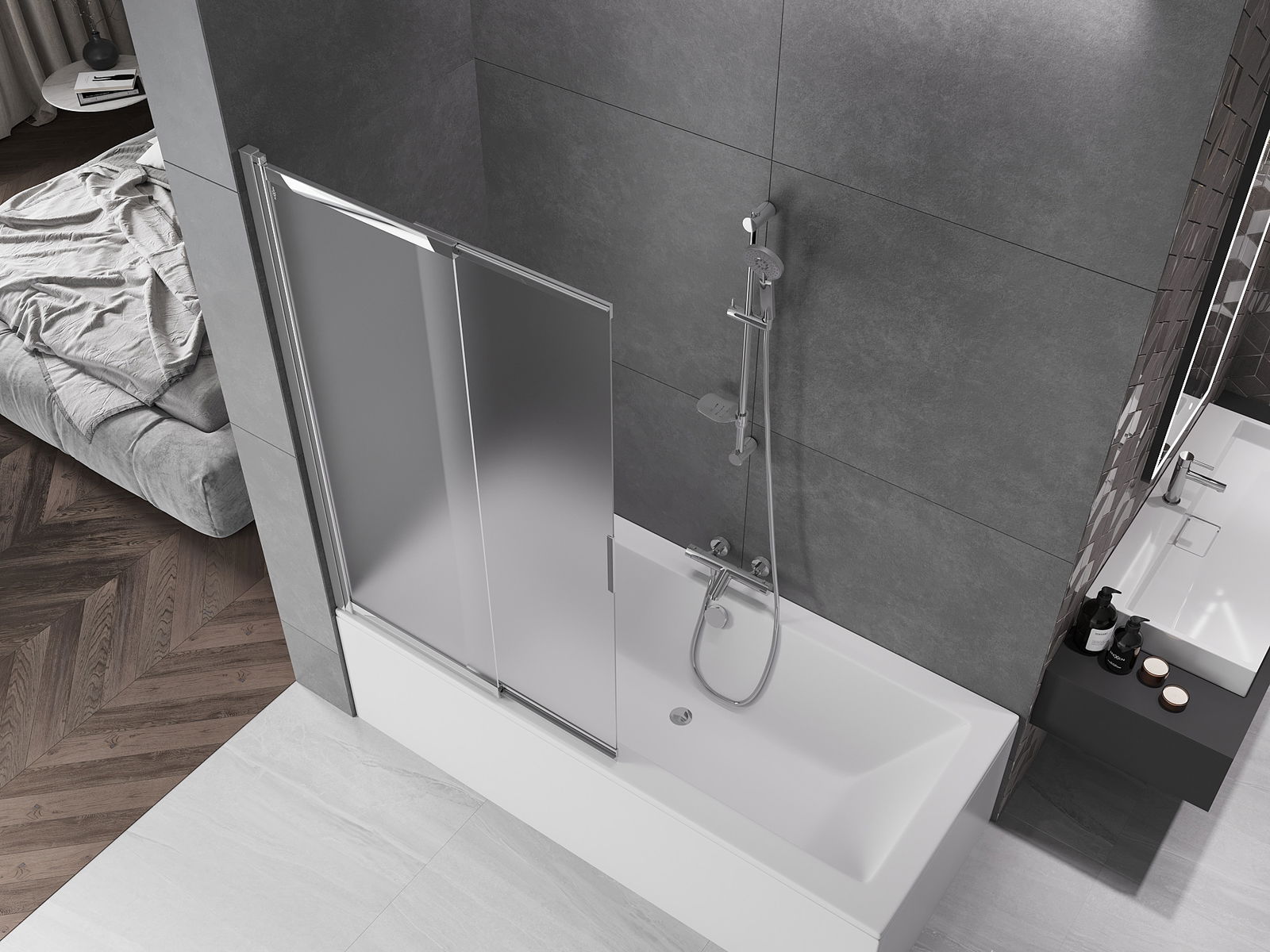 Díky použití univerzálního montážního systému může být paraván namontován na pravé nebo levé straně, podle potřeby. Tímto způsobem můžete snadno navrhnout sprchu přizpůsobenou prostoru koupelny.