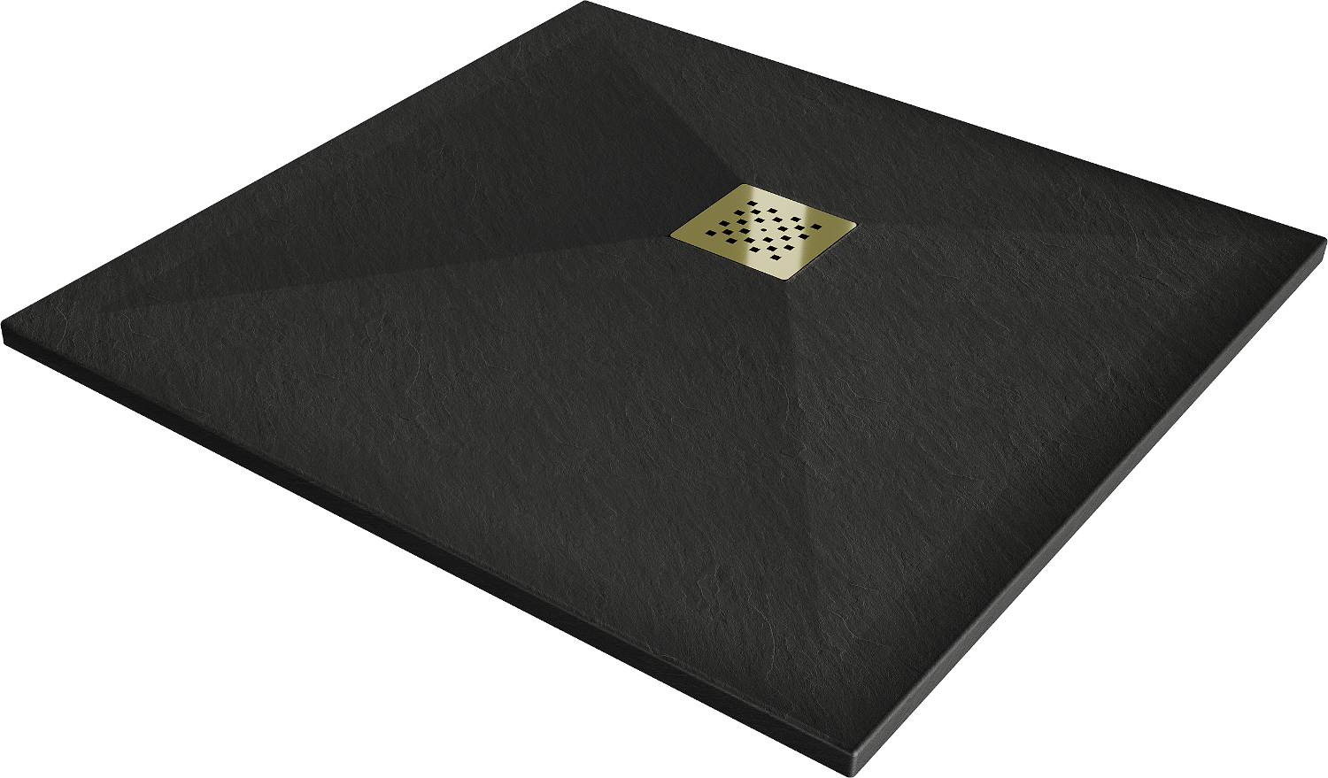 Mexen Stone+ kompozitní sprchová vanička čtvercová 80 x 80 cm, černá, kryt zlatý - 44708080-G