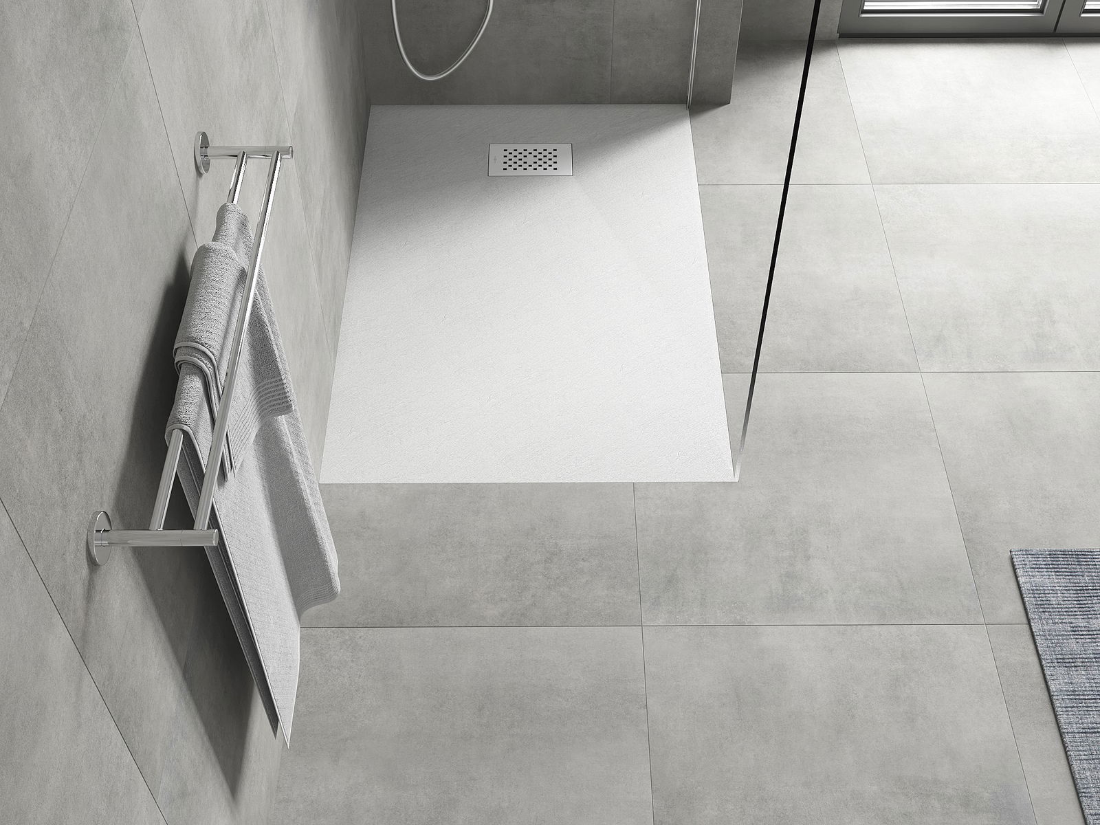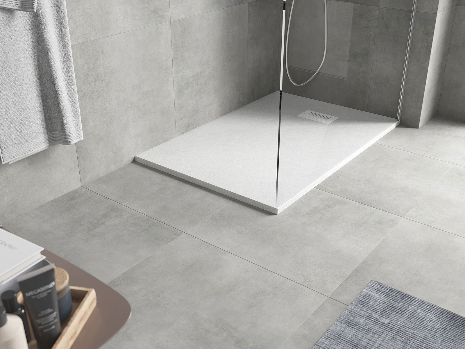 Povrch sprchové vaničky svou strukturou připomíná kámen. Představuje jedinečné spojení přírodního vzhledu s moderním uspořádáním interiéru. Dodává charakter, podtrhuje estetiku a eleganci designu koupelny a okouzluje svou formou.
