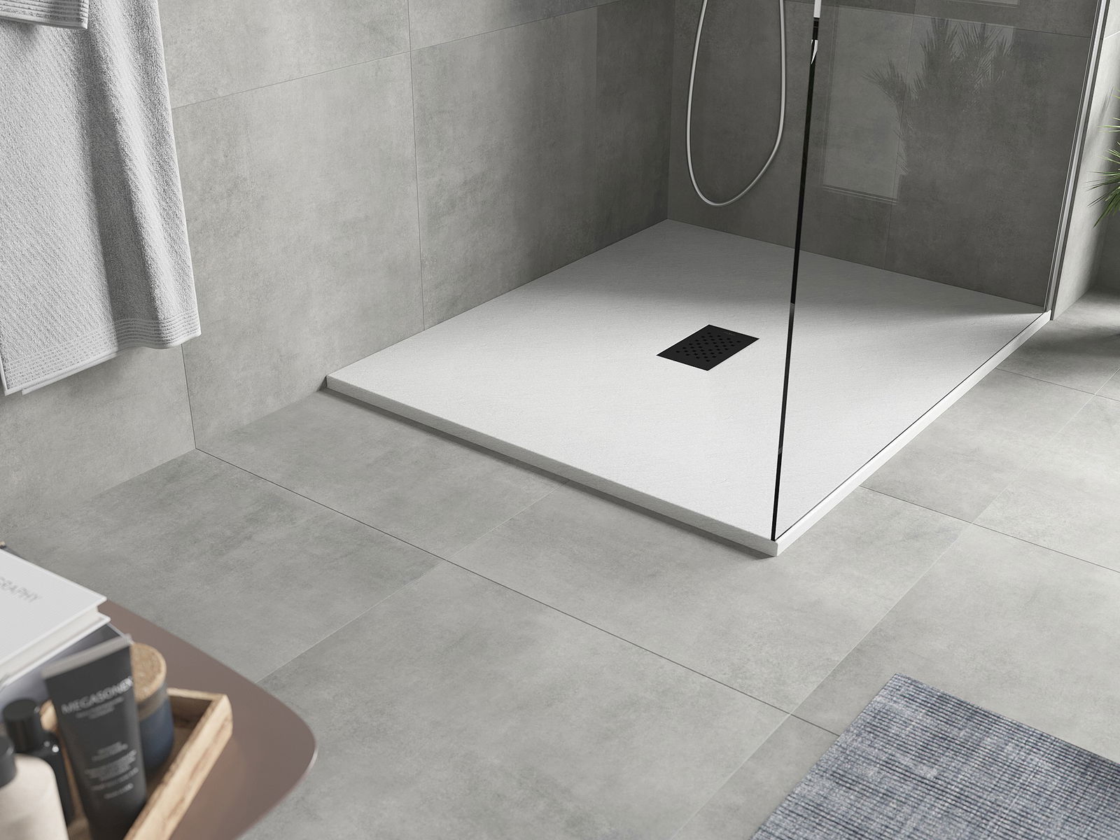 Povrch sprchové vaničky svou strukturou připomíná kámen. Představuje jedinečné spojení přírodního vzhledu s moderním uspořádáním interiéru. Dodává charakter, podtrhuje estetiku a eleganci designu koupelny a okouzluje svou formou.