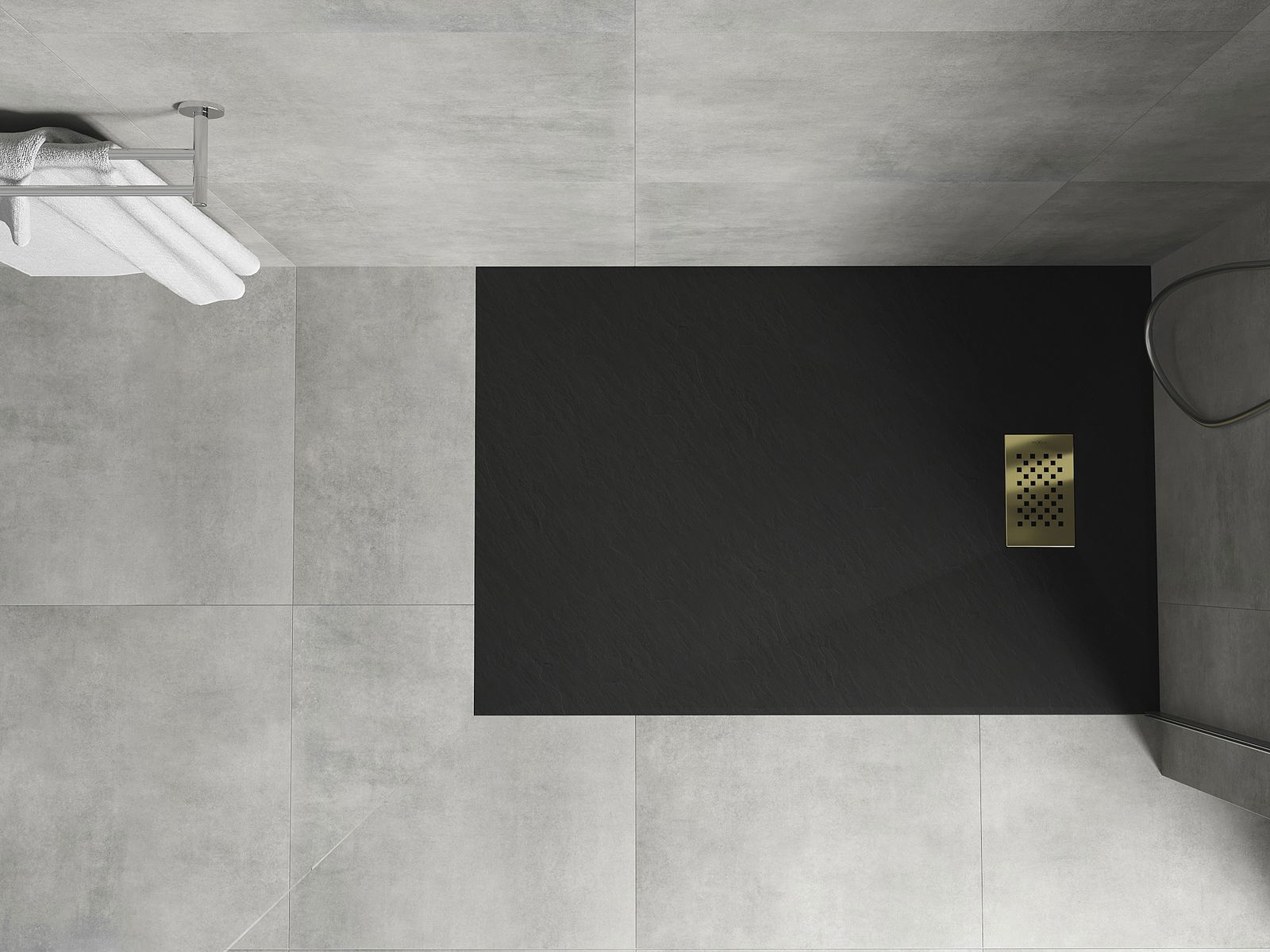 Mexen Hugo obdélníková sprchová vanička SMC 80 x 70 cm, černá, krytka zlatá - 42707080-G