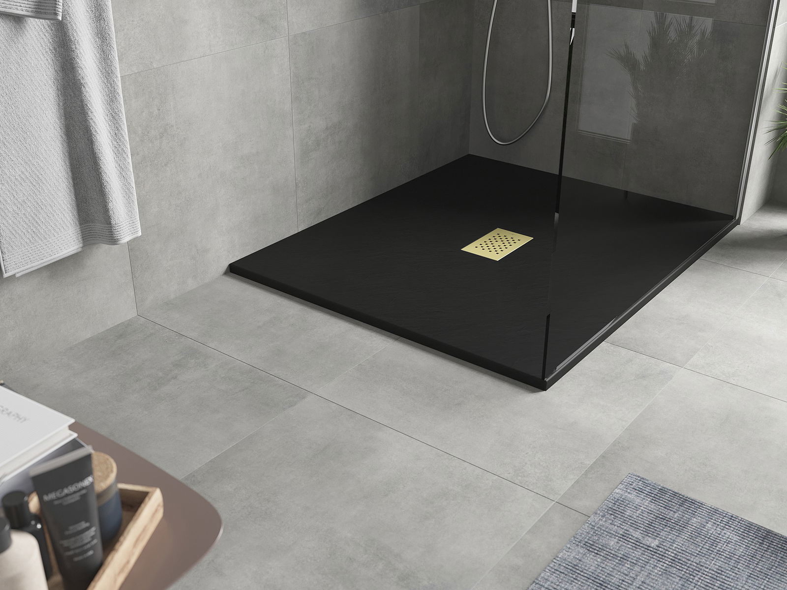 Mexen Hugo obdélníková vanička SMC 110 x 100 cm, černá, krytka zlatá - 42701011-G