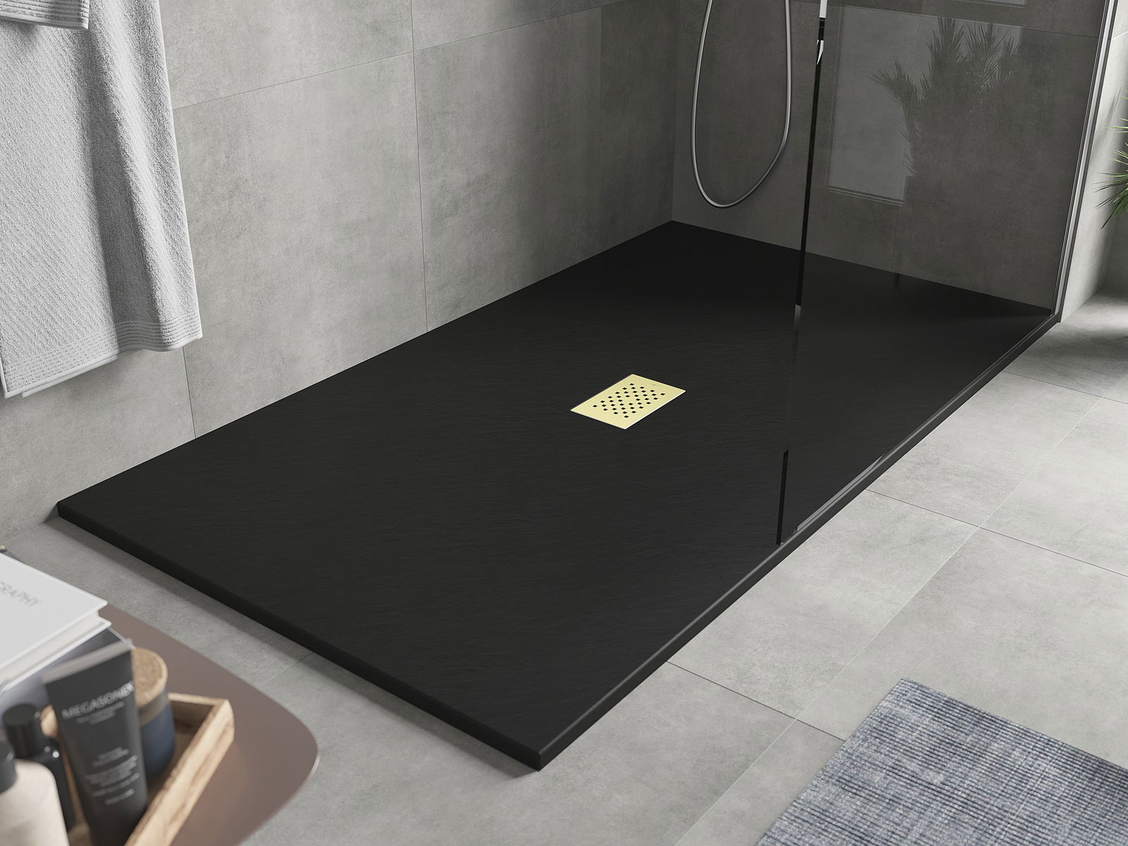 Povrch sprchové vaničky svou strukturou připomíná kámen. Představuje jedinečné spojení přírodního vzhledu s moderním uspořádáním interiéru. Dodává charakter, podtrhuje estetiku a eleganci designu koupelny a okouzluje svou formou.