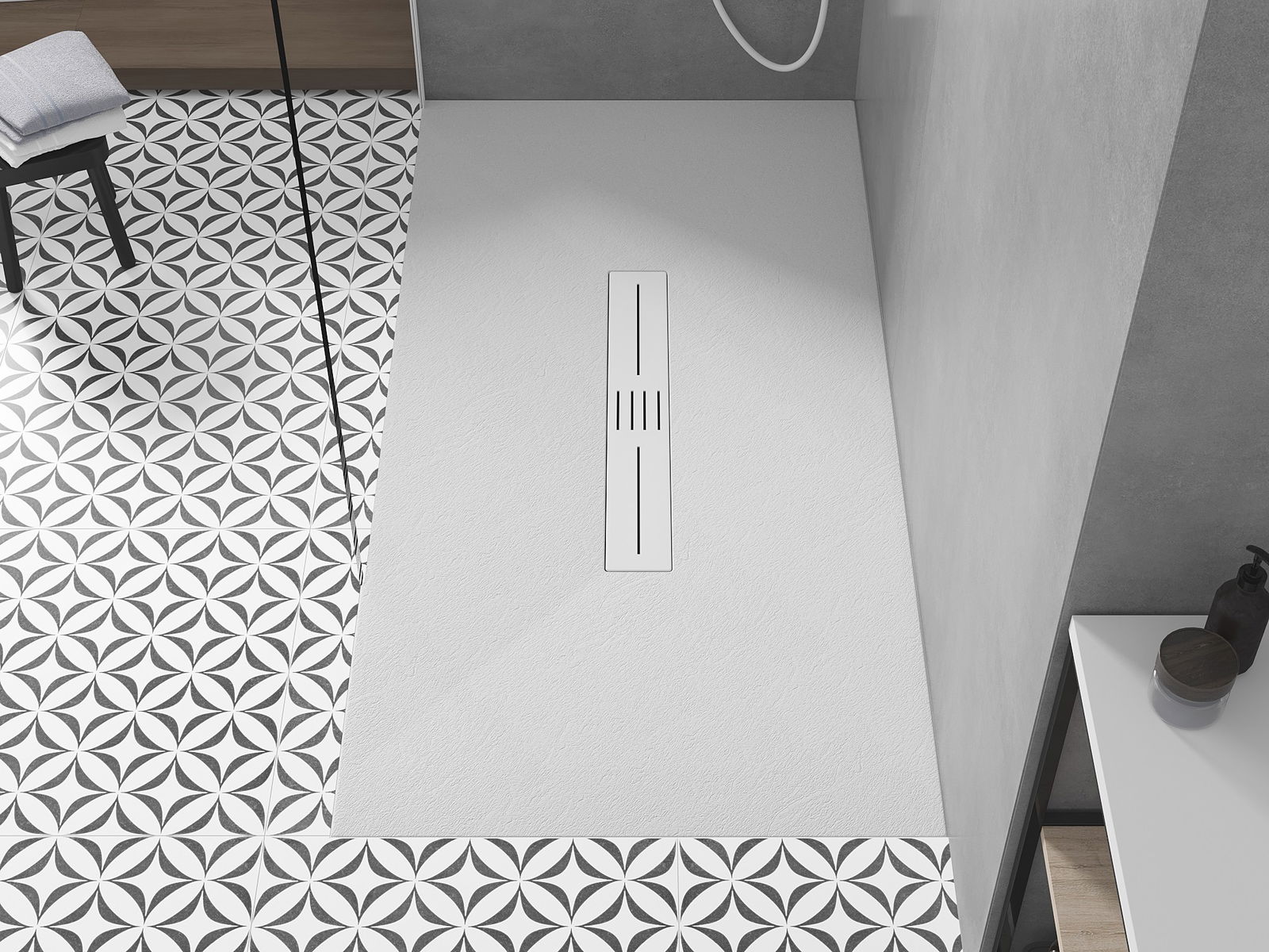 Povrch sprchové vaničky svou strukturou připomíná kámen. Představuje jedinečné spojení přírodního vzhledu s moderním uspořádáním interiéru. Dodává charakter, podtrhuje estetiku a eleganci designu koupelny a okouzluje svou formou.
