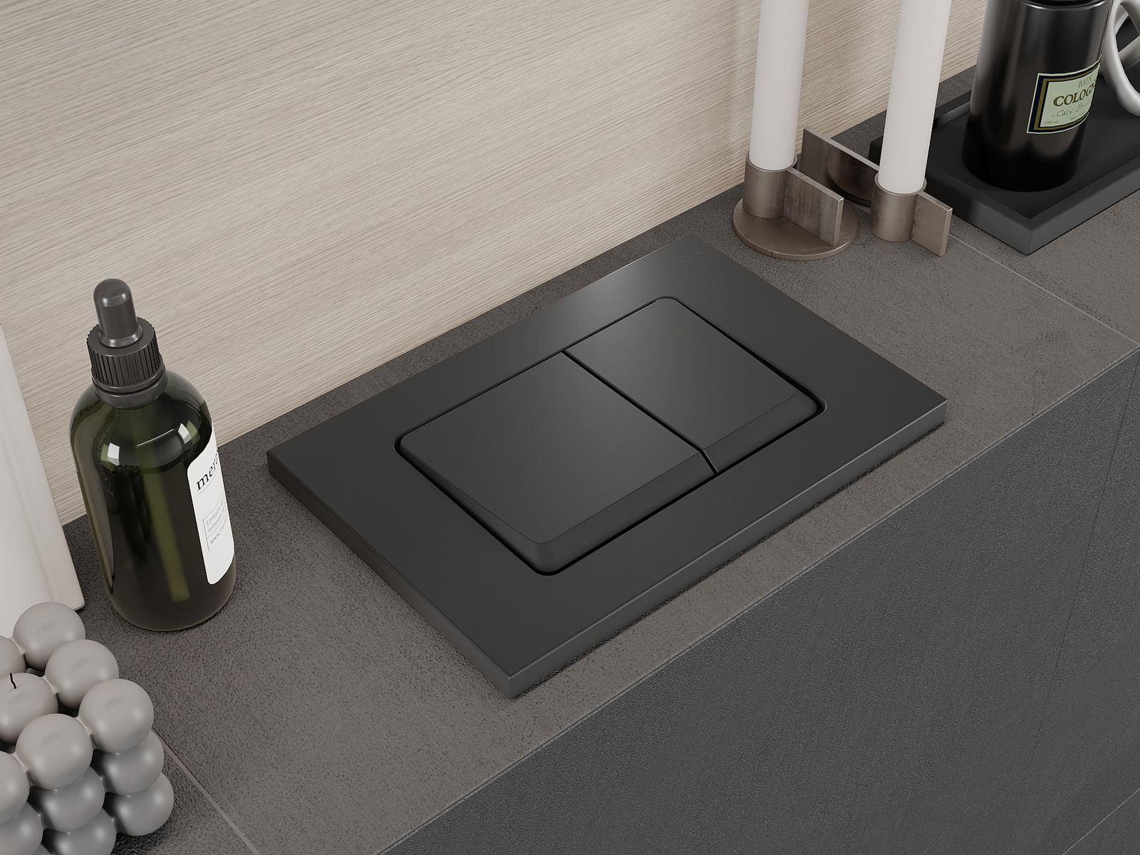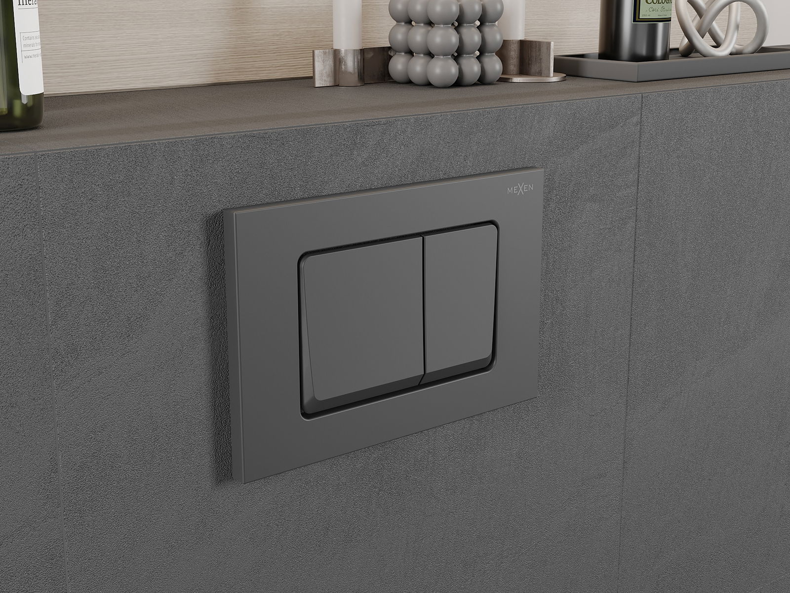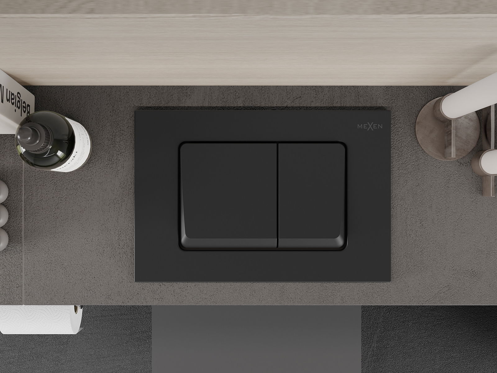 Tlačítko je určeno pro rámy Mexen ze série XS. Může být montováno jak zepředu, tak i shora rámu, což zvyšuje jeho univerzálnost. Takové řešení usnadňuje instalaci v různých montážních podmínkách. Díky tomu je obsluha splachování pohodlná a intuitivní.
