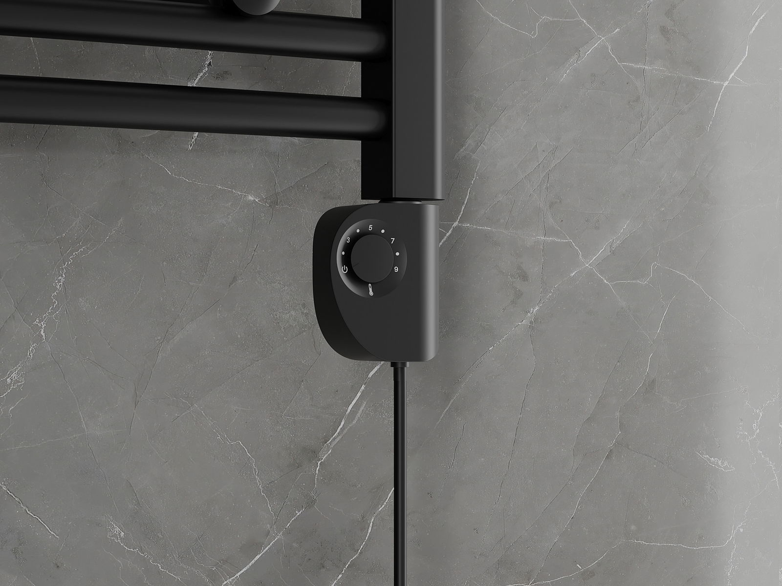 Mexen FA-D elektrický ohřívač 600 W je elegantní a funkční vybavení. Vyznačuje se černou barvou, celkovou délkou 663 mm a topným prvkem o délce 580 mm. Topný výkon je 600 W, což v kombinaci s provozním napětím 230V/50 Hz, zajišťuje efektivní vytápění. Přívodní kabel má délku 1,5 m, ohřívač má závit G 1/2" a stupeň ochrany IP44. Navíc je vybaven LED diodou indikující režim práce a 9stupňovou regulací teploty od 7°C do 35°C.