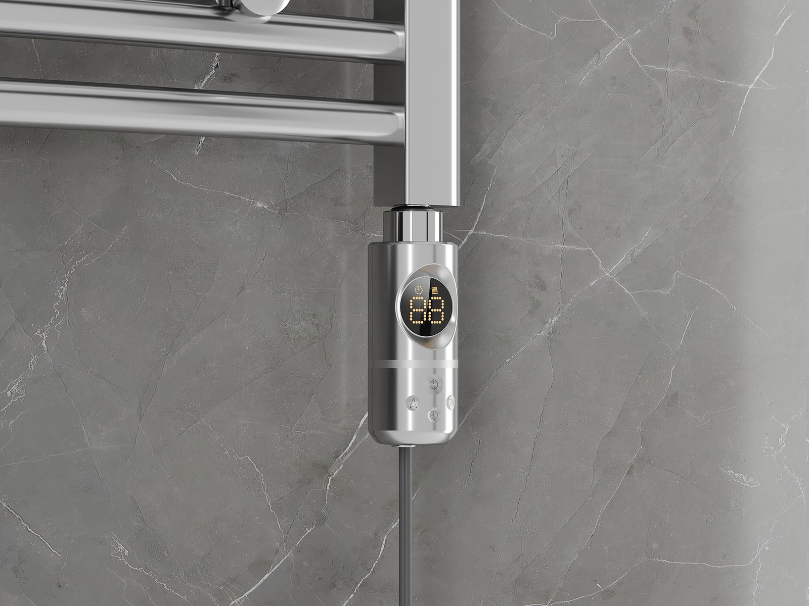Mexen FA-I elektrická topná tyč 600 W, chrom je produkt, který nabízí výkon a modernost. Díky tepelnému výkonu 600 W, délce topného prvku 540 mm a krytí IP44 zajišťuje efektivní vytápění a bezpečnost používání. LED displej usnadňuje obsluhu a funkce jako sušení, dětská pojistka a ochrana proti chodu 'nasucho' zvyšují komfort a bezpečnost. Chromované provedení dodává eleganci, což činí topnou tyč perfektně zapadající do každého interiéru.